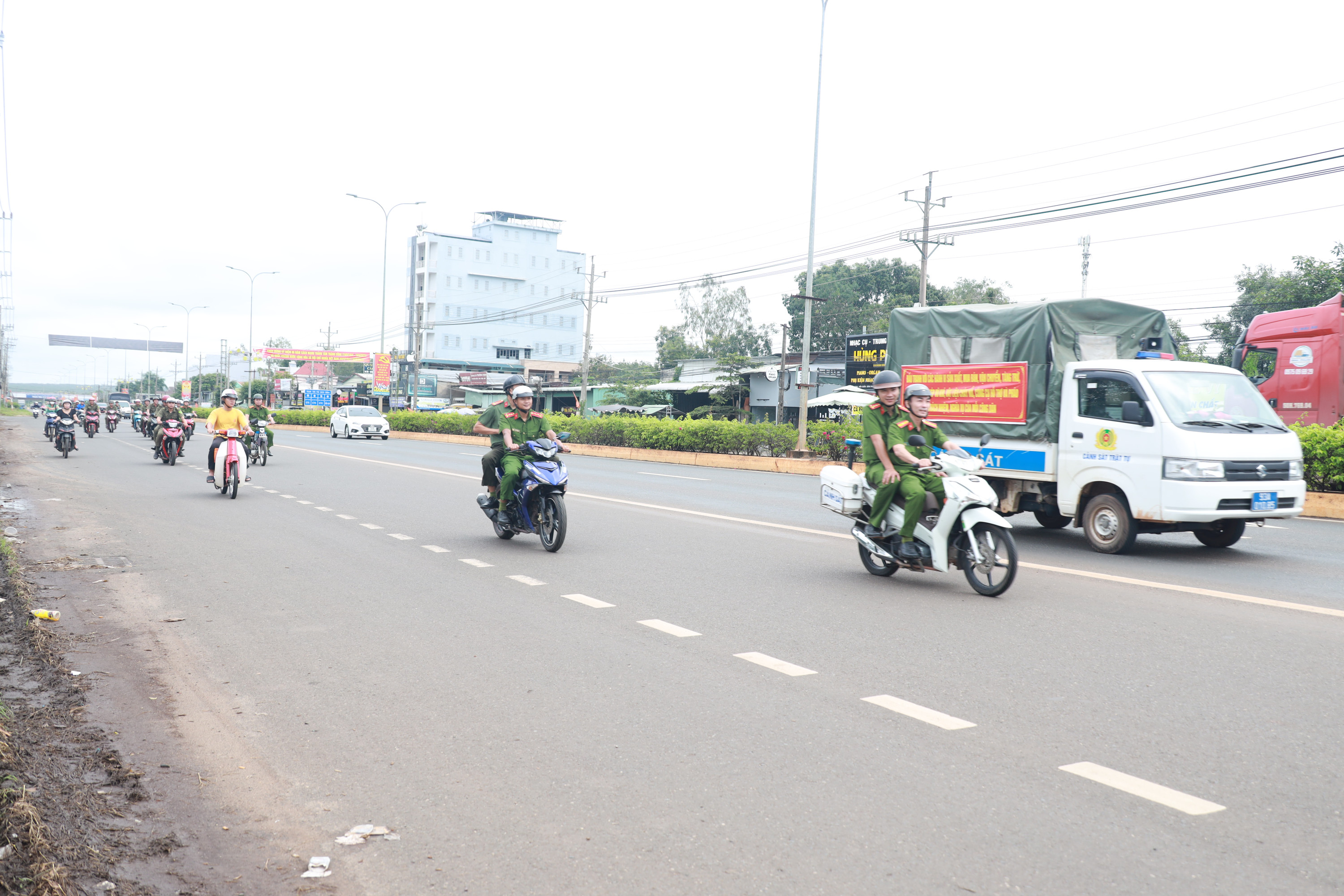 Ngay sau lễ phát động, các lực lượng đã tham gia diễu hành, mít tinh dọc Quốc lộ 13 đến khu vực chợ Tân Khai nhằm góp phần nâng cao nhận thức, ý thức của nhân dân trong việc chấp hành pháp luật, bảo đảm an ninh trật tự, phòng ngừa tội phạm, xây dựng đời sống bình yên, an toàn và văn minh.”