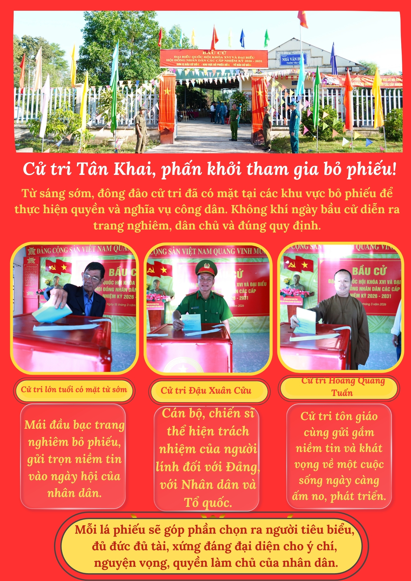 Từ sớm tinh khôi của ngày mới, từng dòng người đã lặng lẽ tìm về khu vực bỏ phiếu, mang theo niềm tin và trách nhiệm công dân trong ngày trọng đại của non sông.