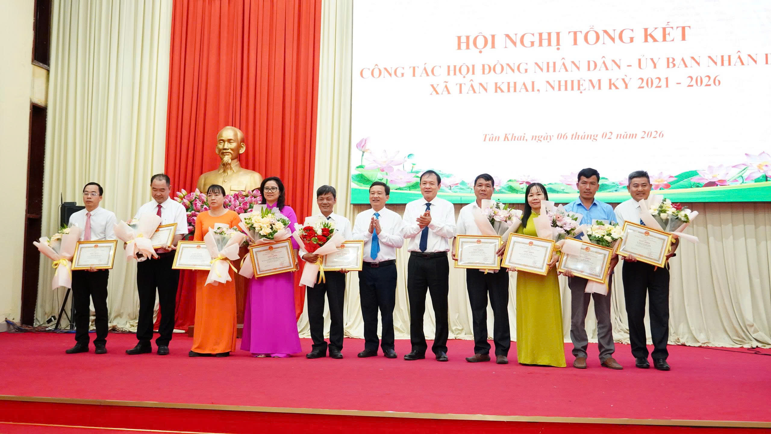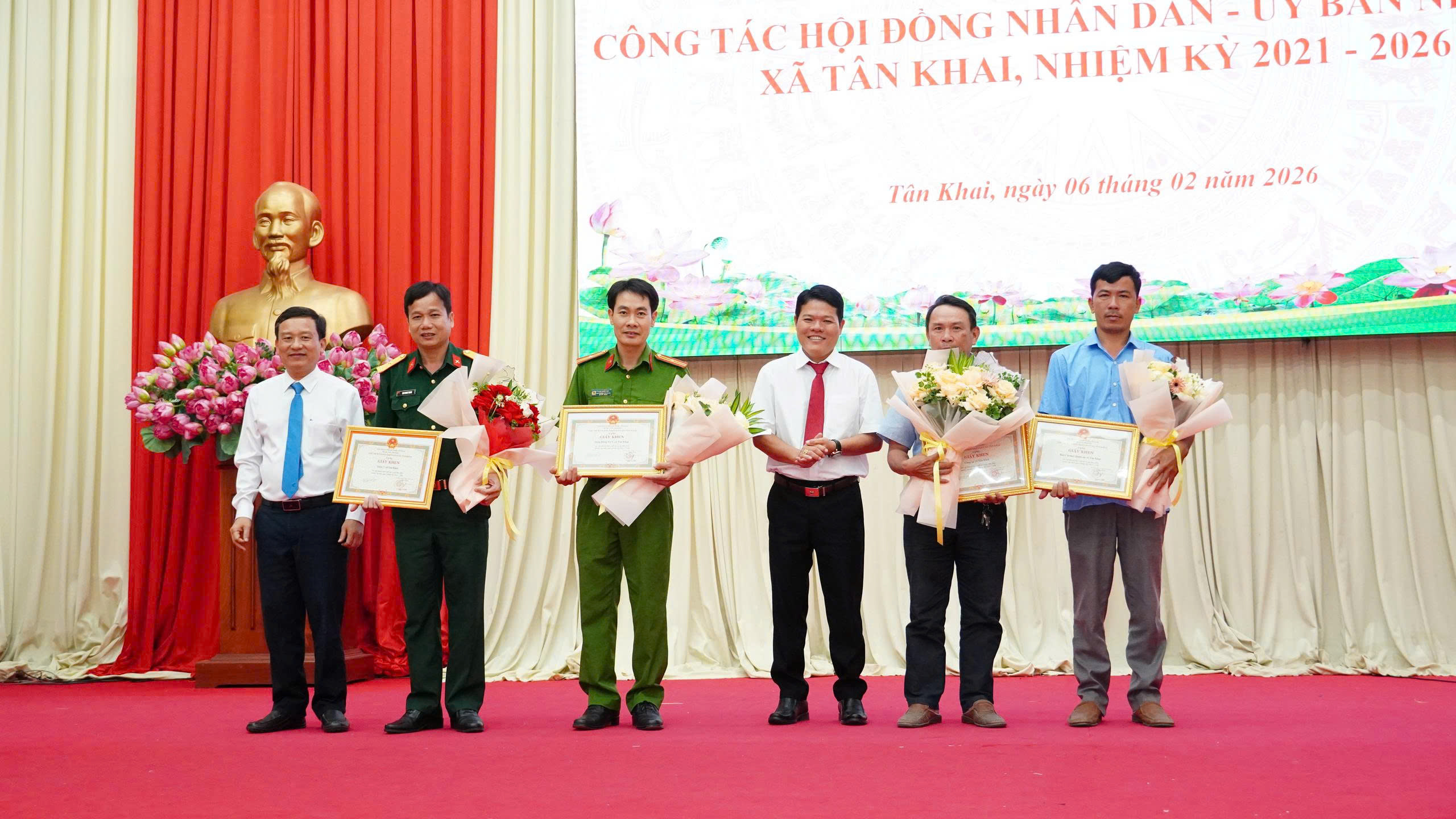 Dịp này, UBND xã đã khen thưởng các tập thể, cá nhân tiêu biểu và tổ chức tri ân nguyên lãnh đạo HĐND, UBND huyện Hớn Quản, các xã Đồng Nơ, Tân Hiệp, Thị trấn Tân Khai (cũ) nhiệm kỳ 2021 – 2026.