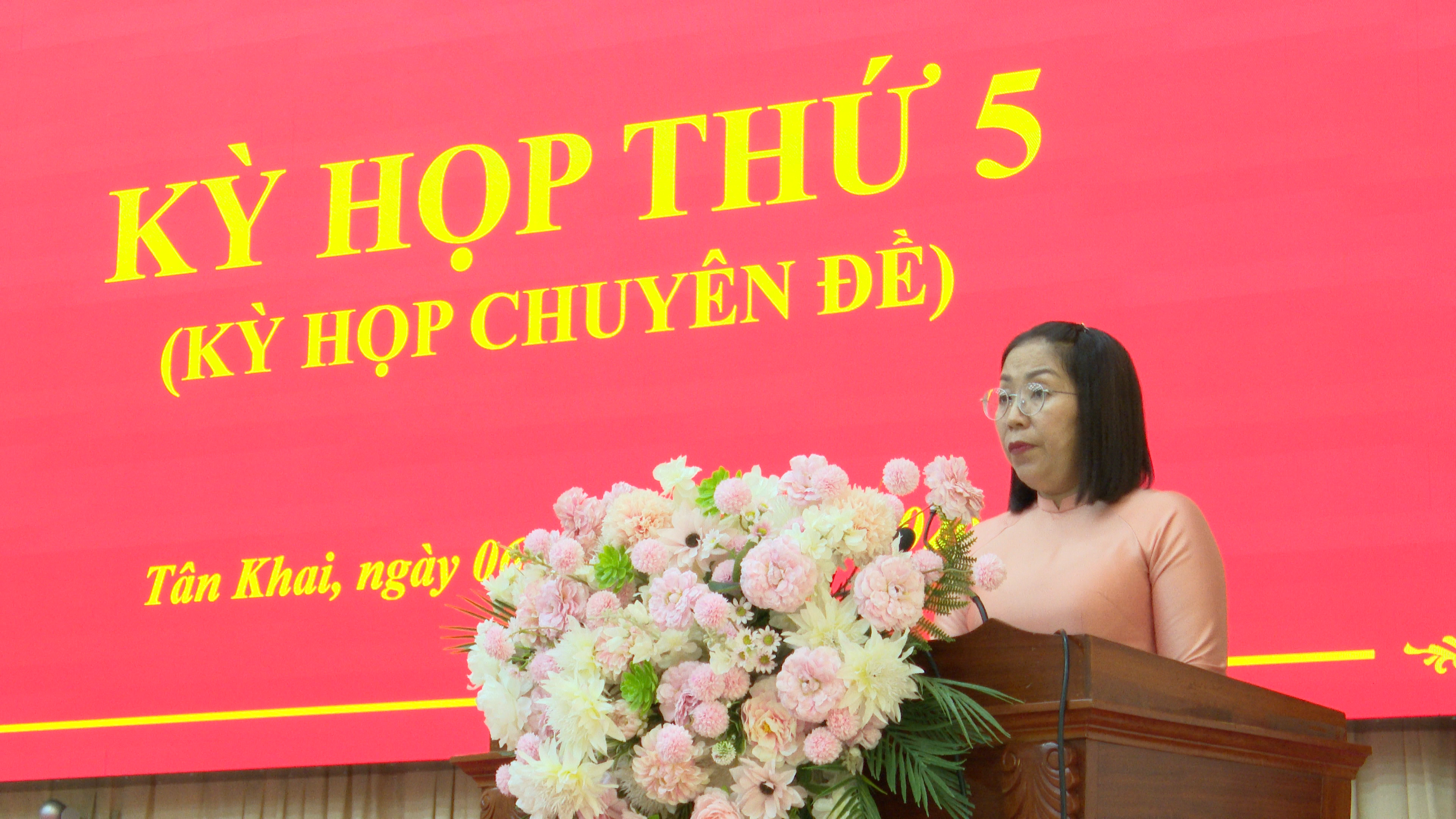 Sáng ngày 06/02/2026, Hội đồng nhân dân xã Tân Khai tổ chức Kỳ họp thứ 5 (chuyên đề) nhiệm kỳ 2021 – 2026, nhằm xem xét, quyết định một số nộị dung quan trọng thuộc thẩm quyền. Bà Quách Thị Ánh, Tỉnh ủy viên, Bí thư Đảng ủy, Chủ tịch HĐND xã phát biểu khai mạc kỳ họp.