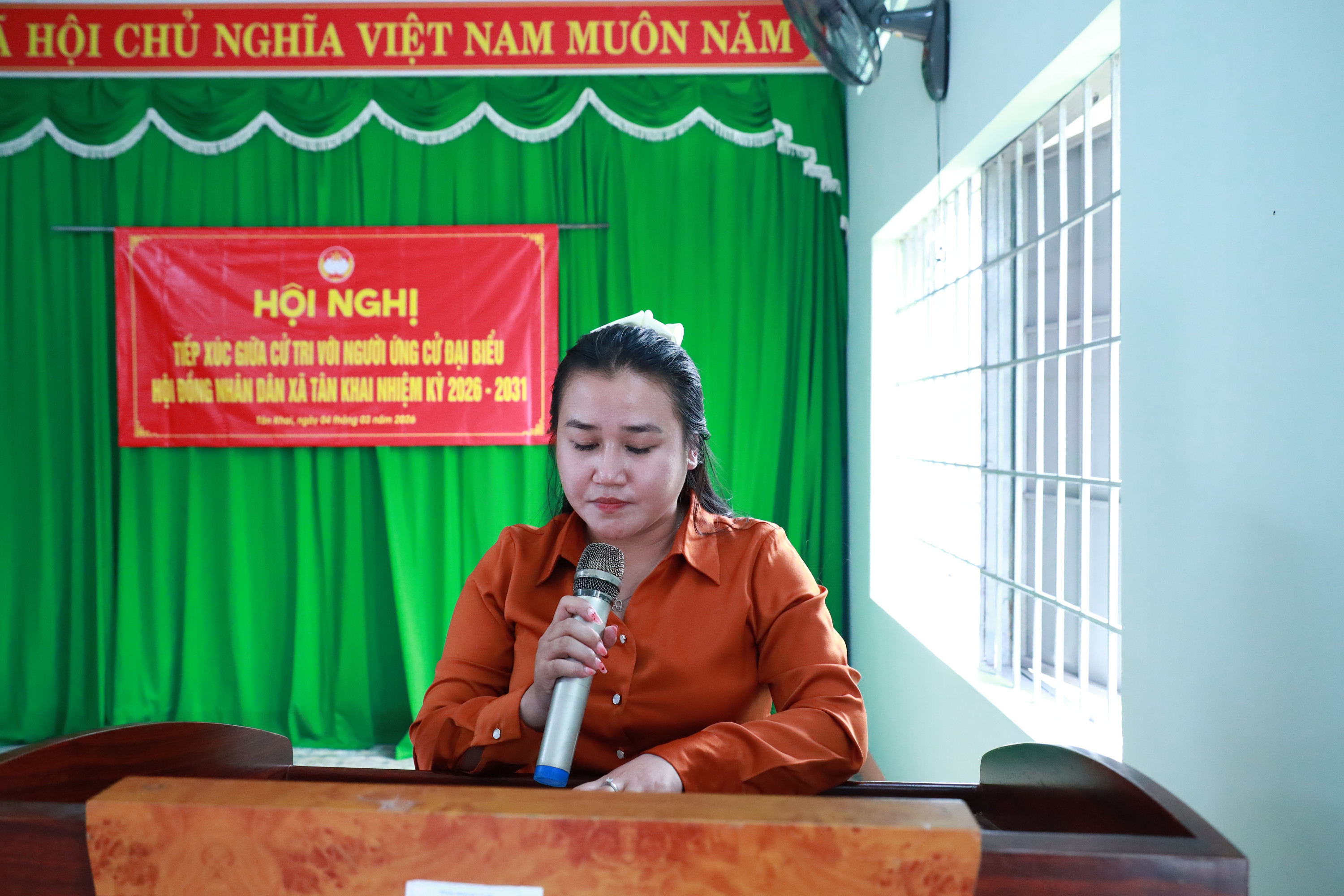 HỘI NGHỊ TIẾP XÚC GIỮA CỬ TRI VỚI NGƯỜI ỨNG CỬ ĐẠI BIỂU HỘI ĐỒNG NHÂN DÂN XÃ TÂN KHAI TẠI ĐƠN VỊ BẦU CỬ SỐ 07