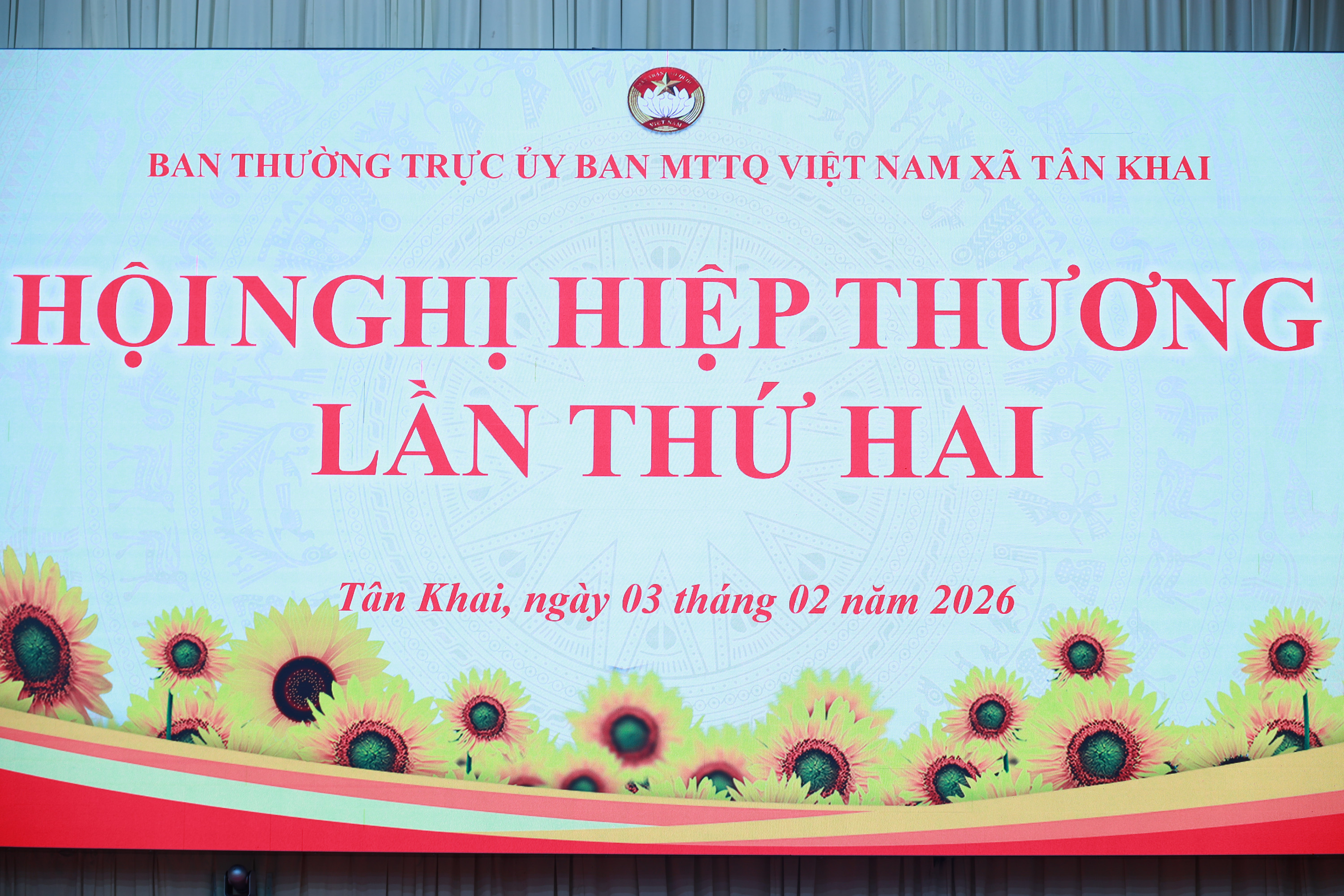 Danh sách sơ bộ 39 người ứng cử đại biểu HĐND xã Tân Khai nhiệm kỳ 2026 – 2030 đã được 100% đại biểu thống nhất thông qua tại Hội nghị hiệp thương lần thứ hai do Ban Thường trực Ủy ban MTTQ Việt Nam xã tổ chức chiều 03/02.