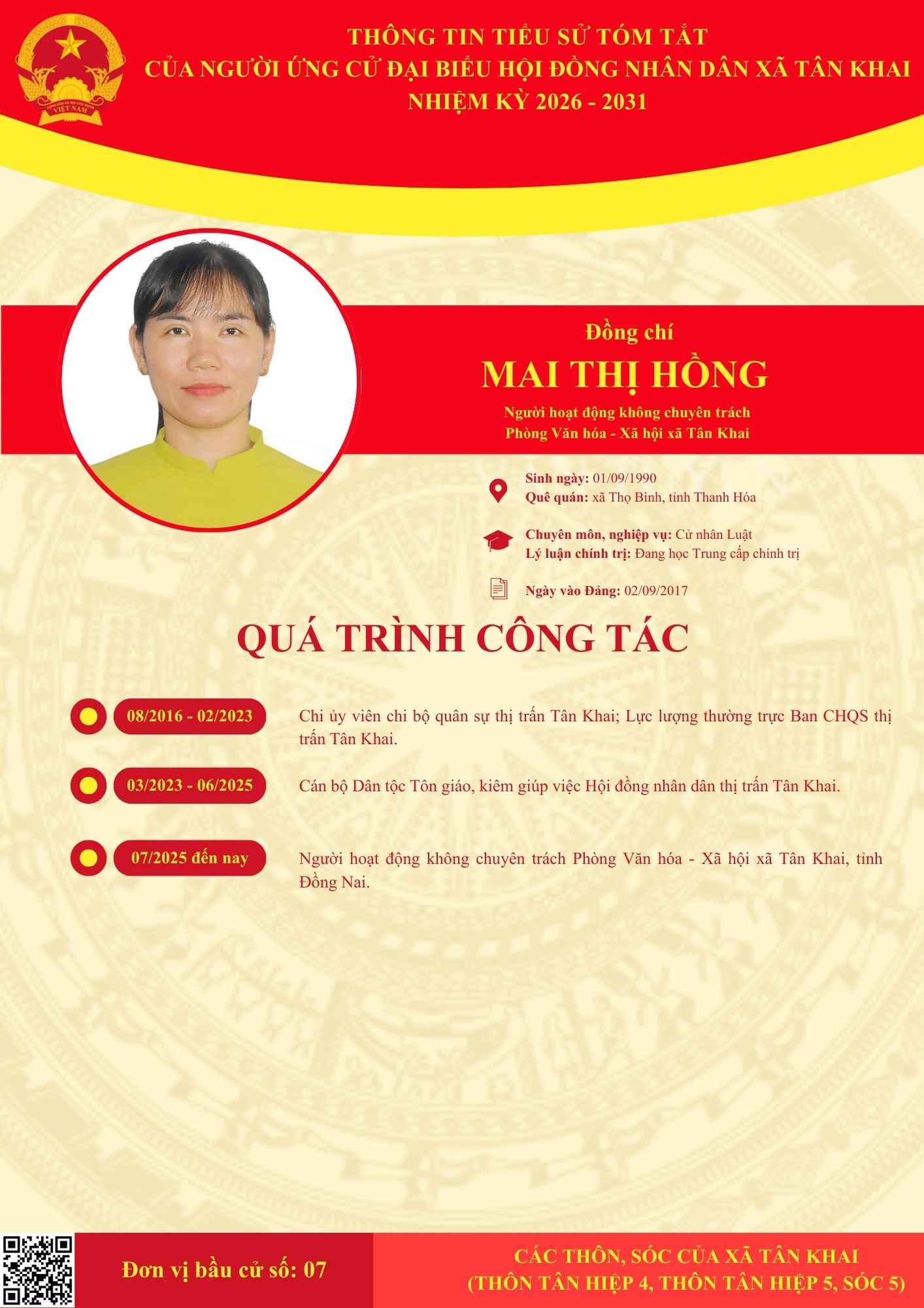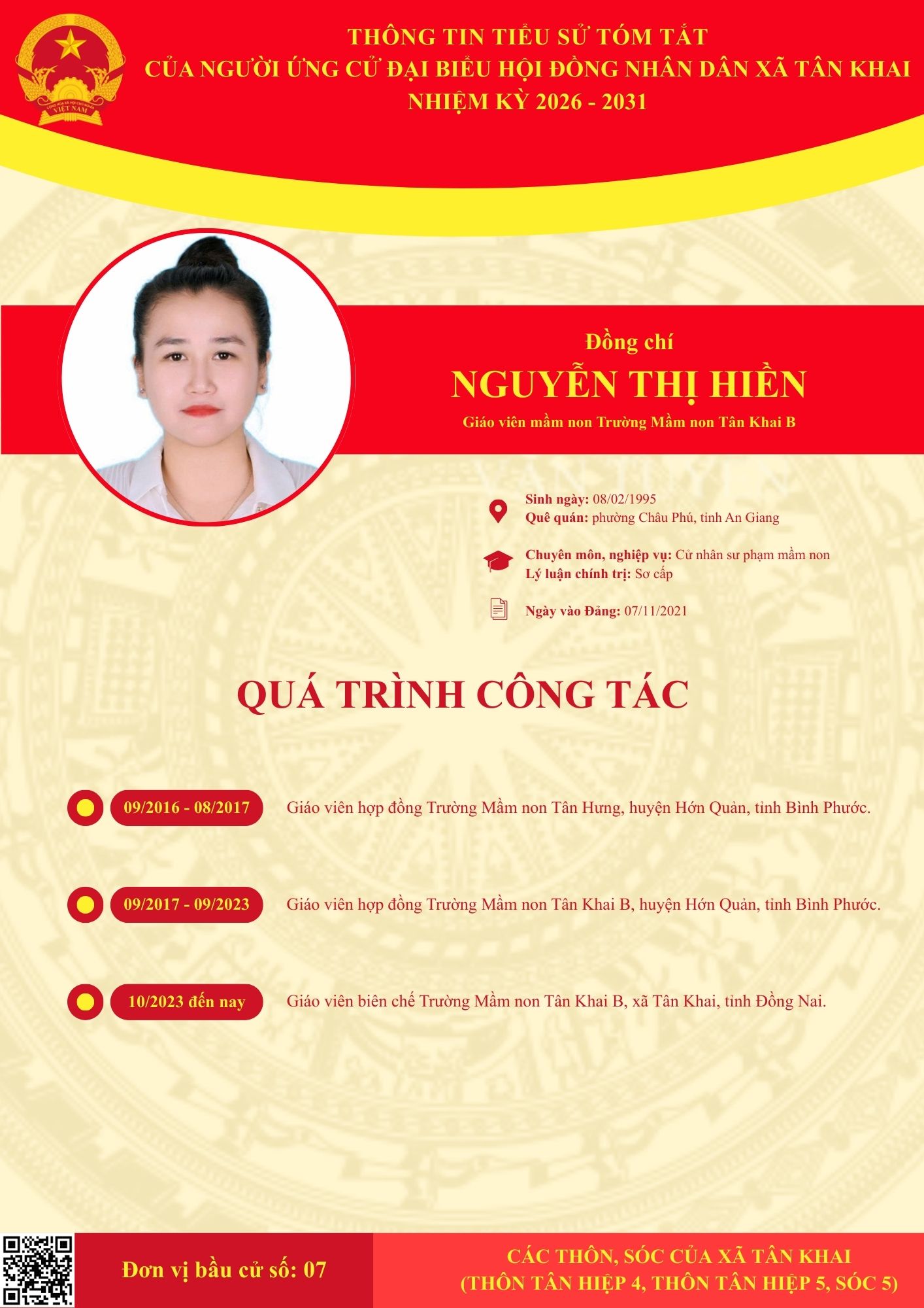 TIỂU SỬ TÓM TẮT CÁC ĐẠI BIỂU ỨNG CỬ HĐND XÃ NHIỆM KỲ 2026-2031 TẠI ĐƠN VỊ BẦU CỬ SỐ 7