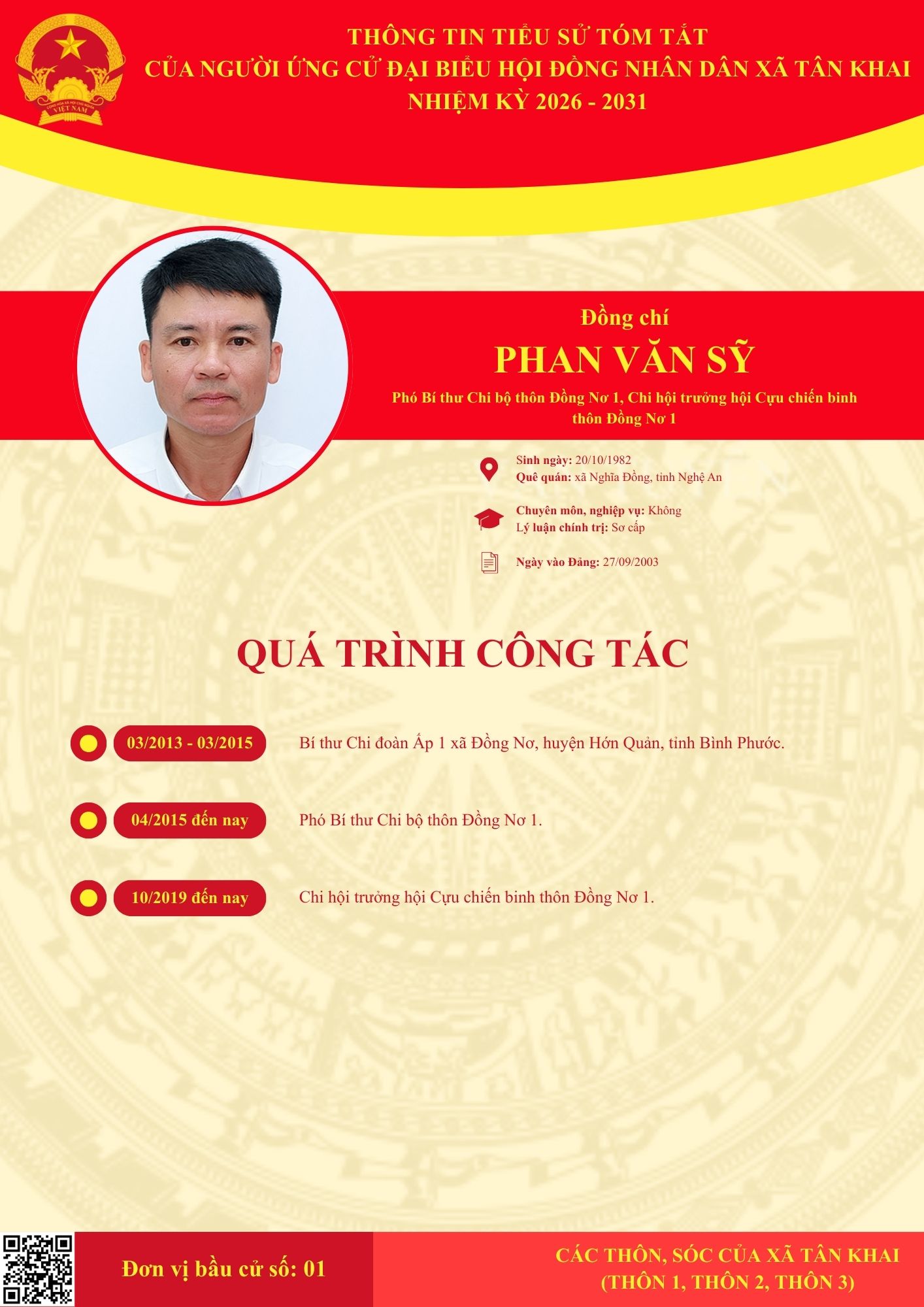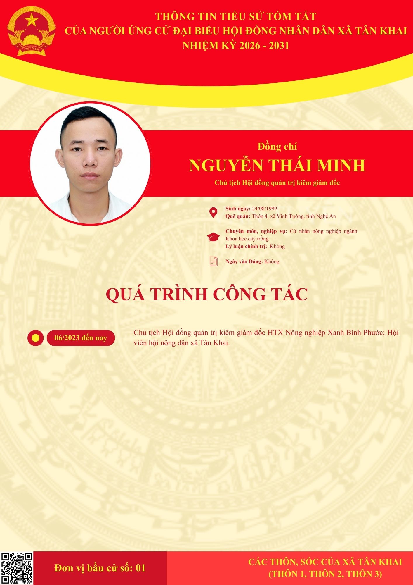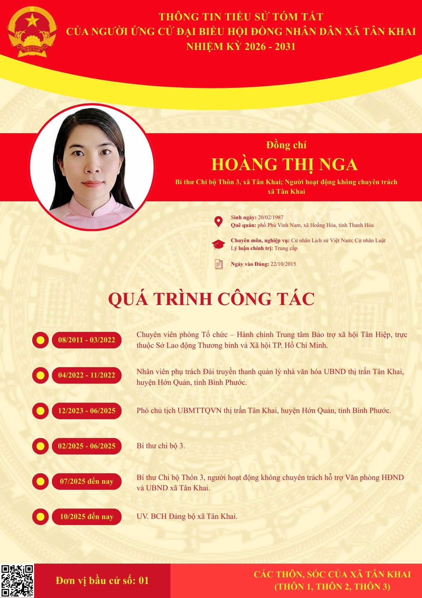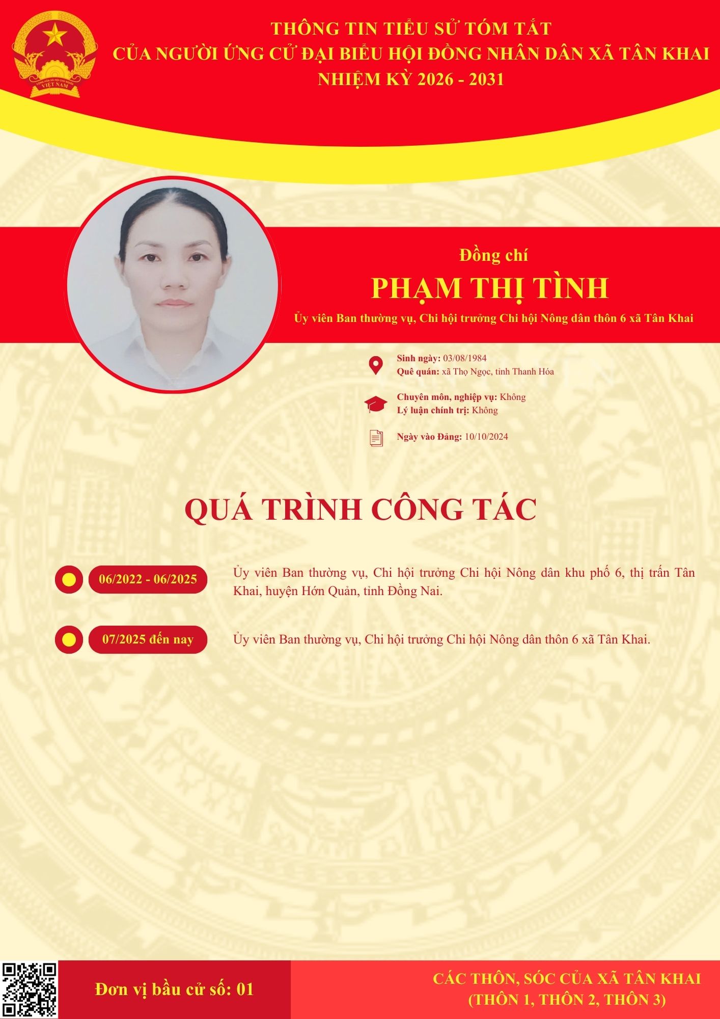 TIỂU SỬ TÓM TẮT CÁC ĐẠI BIỂU ỨNG CỬ HĐND XÃ NHIỆM KỲ 2026-2031 TẠI ĐƠN VỊ BẦU CỬ SỐ 1 (THÔN 1, THÔN 2, THÔN 3)
