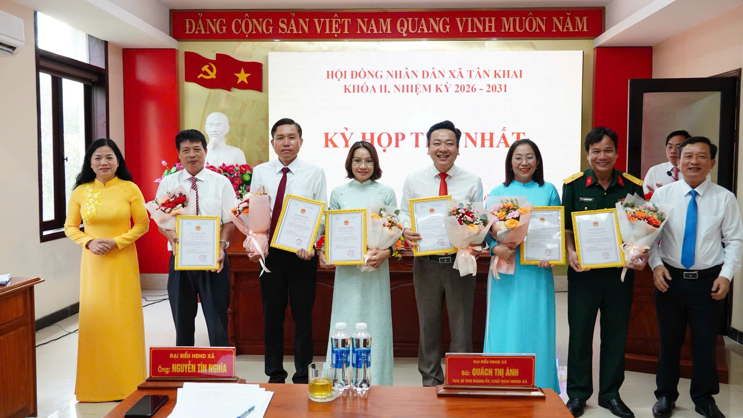 Kỳ họp đã tiến hành bầu các chức danh chủ chốt của Hội đồng nhân dân và Ủy ban nhân dân xã theo đúng quy định của pháp luật, gồm: Chủ tịch, Phó Chủ tịch Hội đồng nhân dân xã; Trưởng các Ban Hội đồng nhân dân xã; Chủ tịch, Phó Chủ tịch và các Ủy viên Ủy ban nhân dân xã. Các Nghị quyết xác nhận kết quả bầu cử các chức danh cũng đã được thông qua với sự thống nhất cao. Kết quả bà Quách Thị Ánh, Bí thư Đảng ủy, CT HĐND xã Khóa I, được bầu giữ chức Chủ tịch HĐND xã Tân Khai, khóa II, nhiệm kỳ 2026-203.