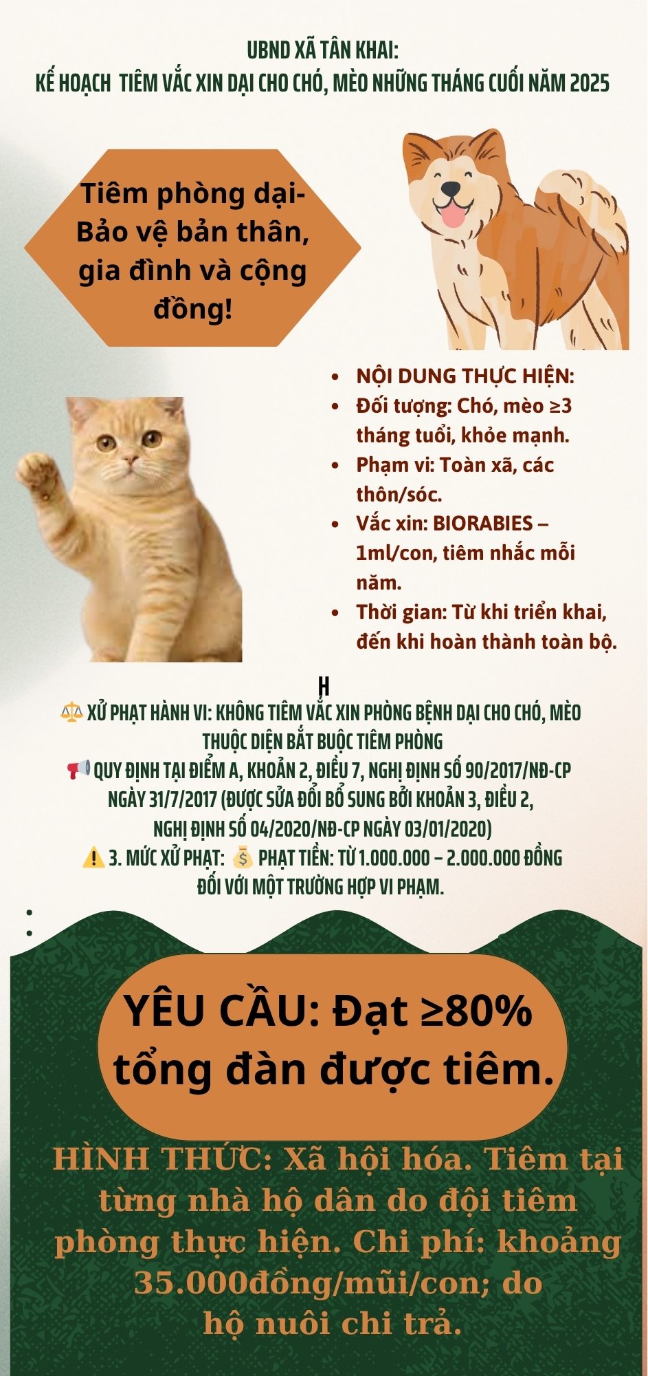 UBND XÃ TÂN KHAI TRIỂN KHAI KẾ HOẠCH TIÊM VẮC XIN DẠI CHO CHÓ, MÈO NHỮNG THÁNG CUỐI NĂM 2025