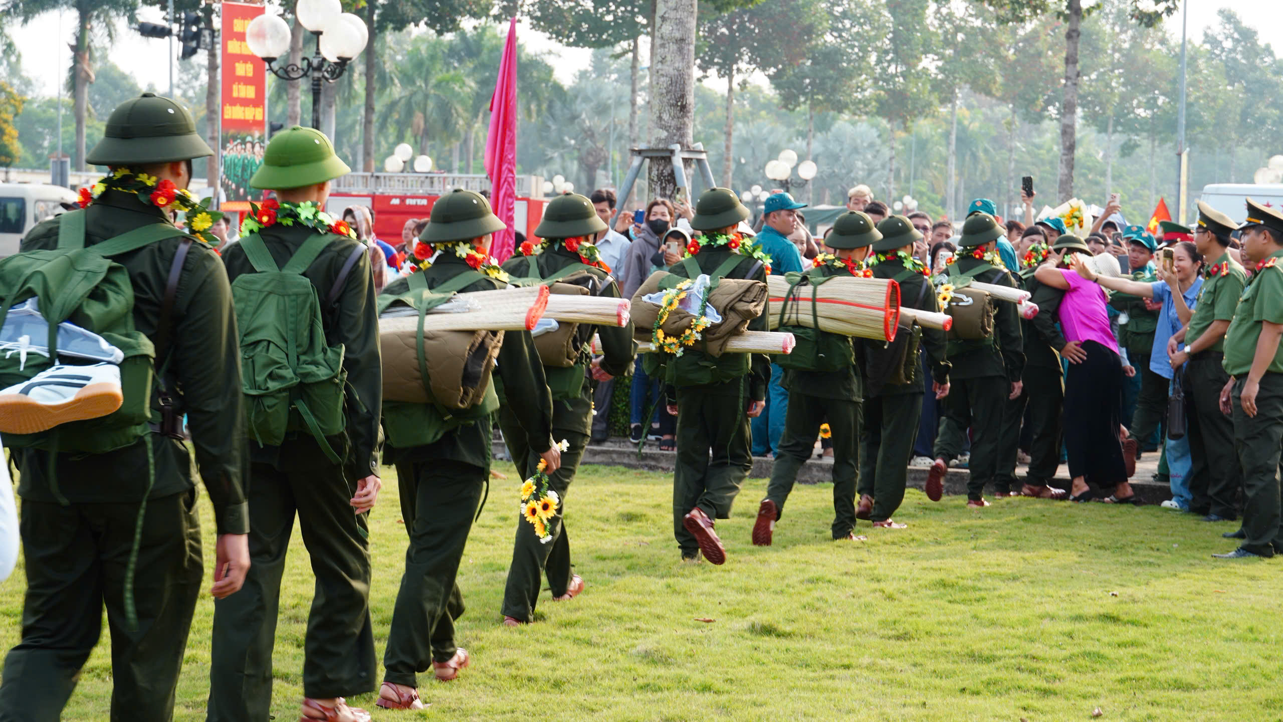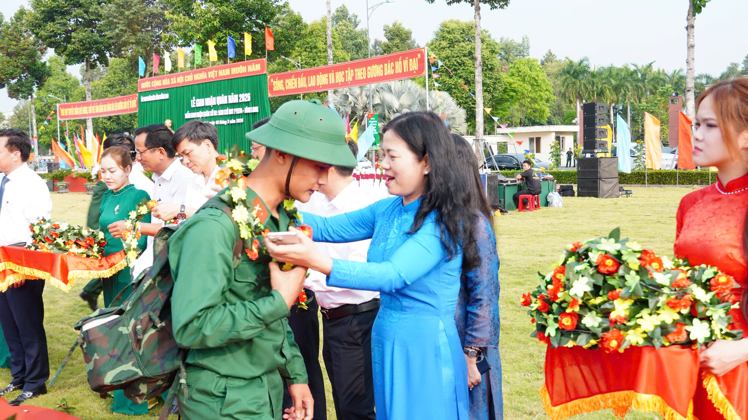 <span style="line-height:115%">Ngay từ sáng sớm, khu vực lễ giao nhận quân đã rộn ràng cờ hoa, băng rôn, khẩu hiệu. Những tân binh trong trang phục chỉnh tề, mang trên vai balô người lính, ánh lên niềm tự hào, quyết tâm của tuổi trẻ sẵn sàng cống hiến cho sự nghiệp xây dựng và bảo vệ Tổ quốc.</span><br />