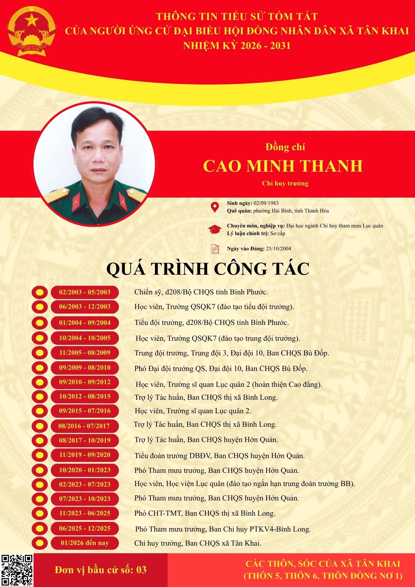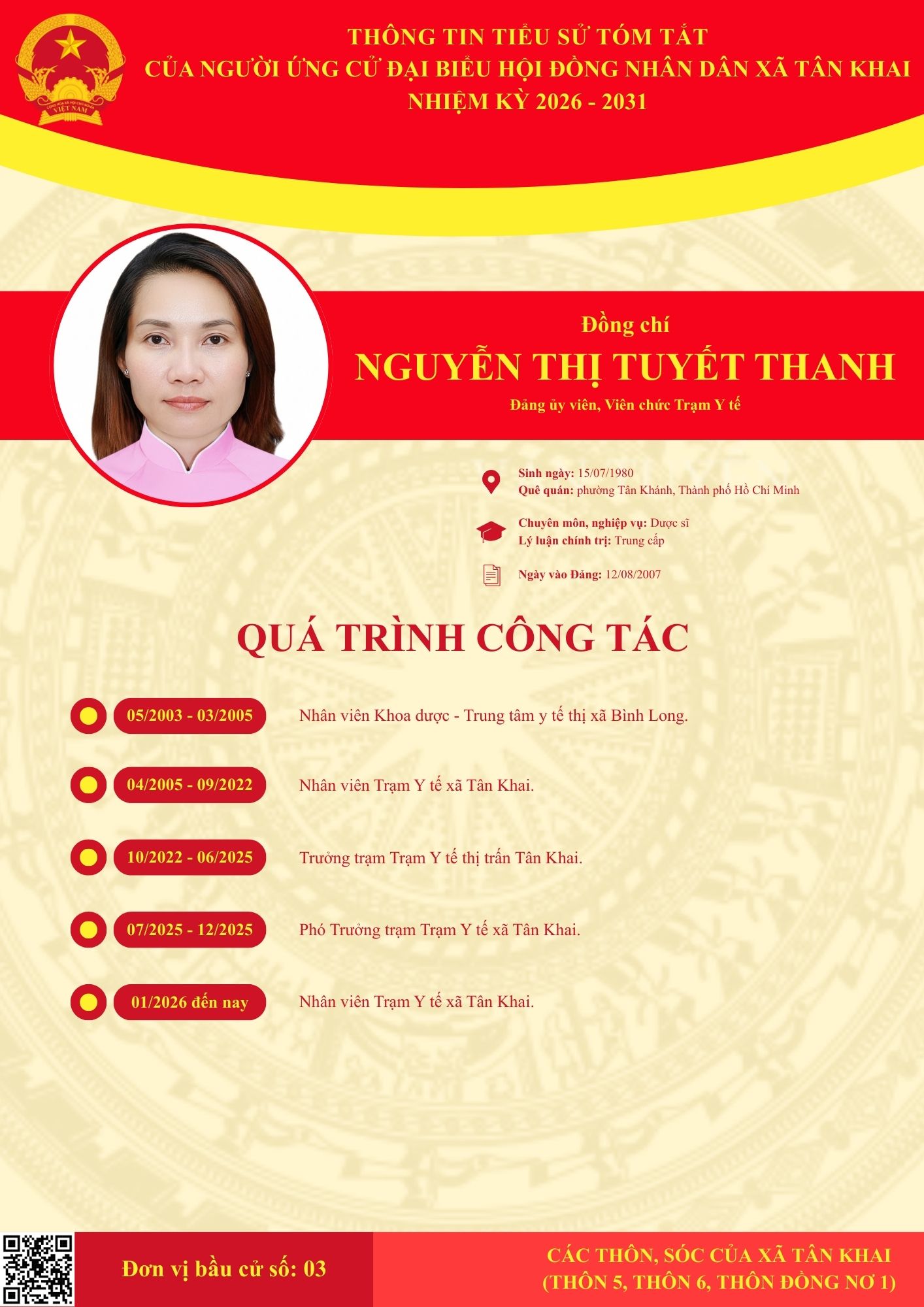 <h1>TIỂU SỬ TÓM TẮT CÁC ĐẠI BIỂU ỨNG CỬ HĐND XÃ NHIỆM KỲ 2026-2031 TẠI ĐƠN VỊ BẦU CỬ SỐ 3</h1>