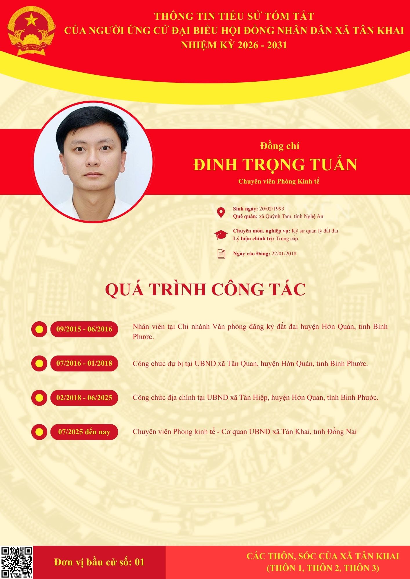 <h1>TIỂU SỬ TÓM TẮT CÁC ĐẠI BIỂU ỨNG CỬ HĐND XÃ NHIỆM KỲ 2026-2031 TẠI ĐƠN VỊ BẦU CỬ SỐ 1 &#40;THÔN 1, THÔN 2, THÔN 3&#41;</h1>