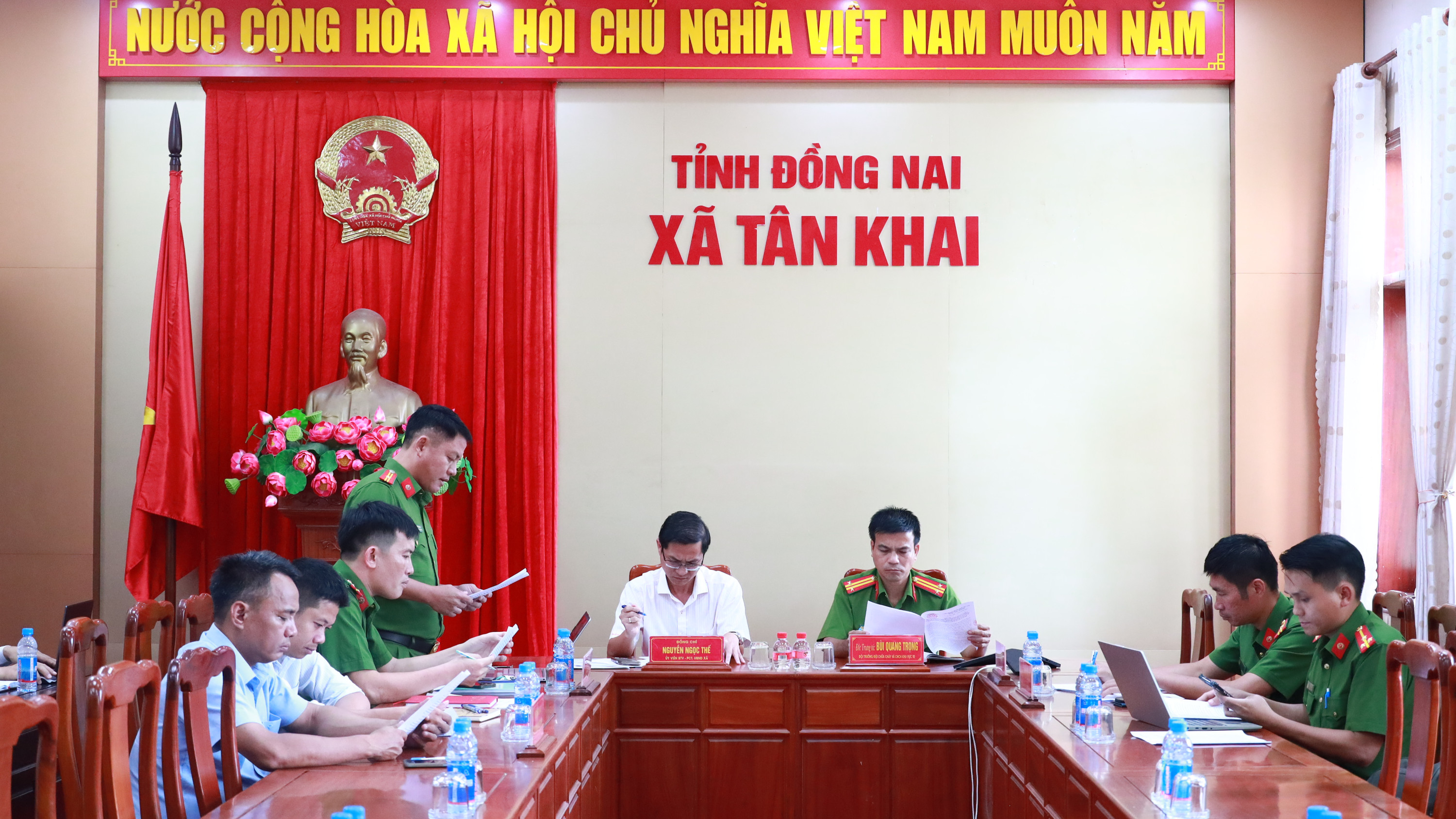<span style="line-height:107%"><span style="line-height:107%">Tham dự buổi làm việc có lãnh đạo các phòng, ban chuyên môn, đơn vị thuộc xã và Công an xã.</span></span><br />