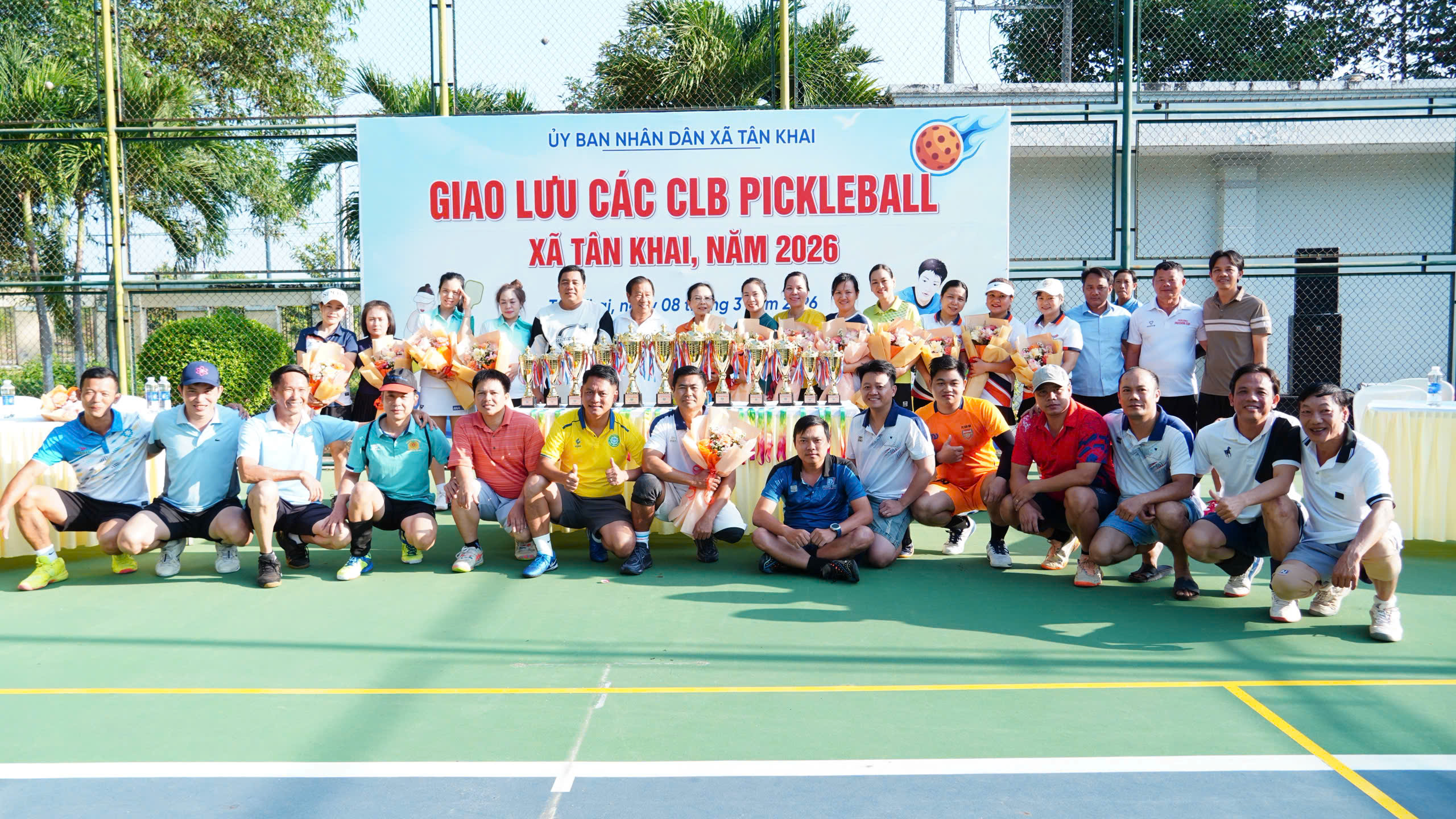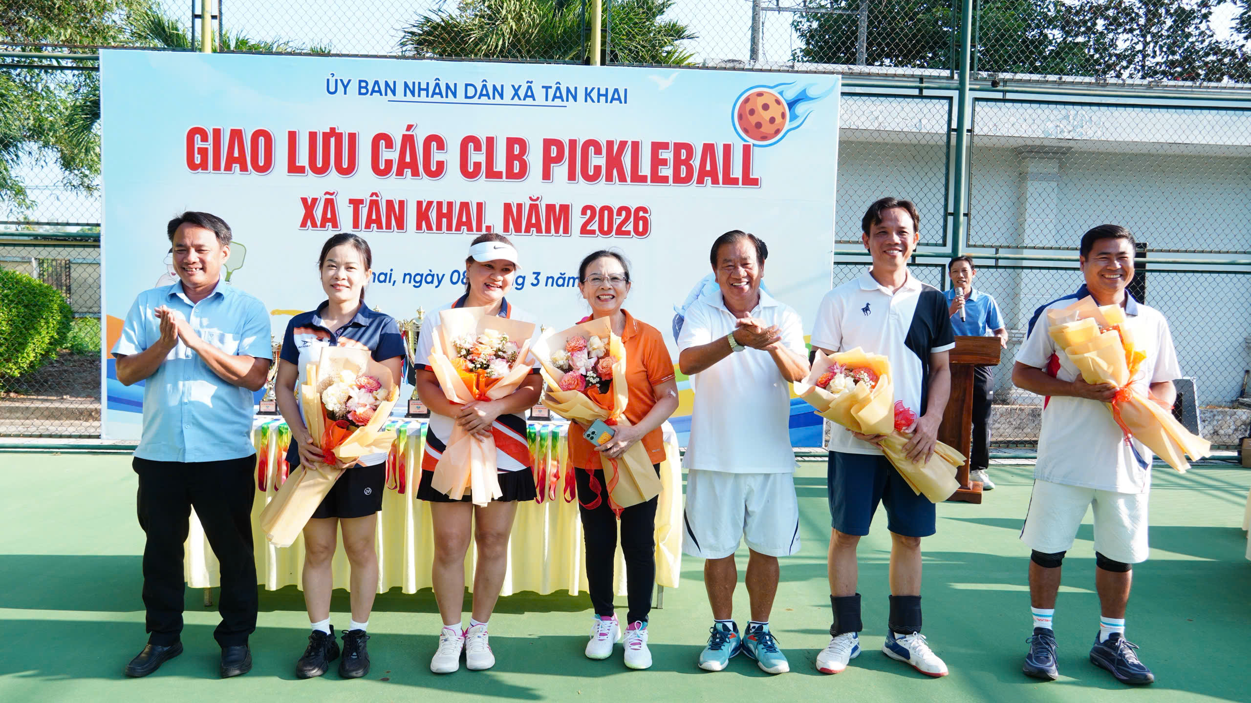 Nhân dịp kỷ niệm Ngày Quốc tế Phụ nữ 8/3, Ủy ban nhân dân xã Tân Khai đã tổ chức chương trình giao lưu các câu lạc bộ Pickleball trên địa bàn xã năm 2026.<br />