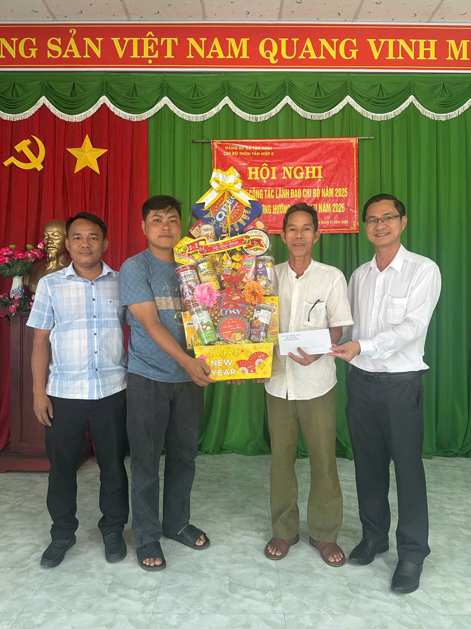<span style="line-height:115%">&nbsp; &nbsp; &nbsp; &nbsp; &nbsp;Hoạt động chăm lo Tết năm nay tiếp tục lan tỏa tinh thần “tương thân tương ái”, “lá lành đùm lá rách”, khơi dậy trách nhiệm của cả hệ thống chính trị và sự chung tay của các tổ chức, doanh nghiệp, nhà hảo tâm. Xuân mới đang về trên quê hương Tân Khai – mang theo niềm tin, sự sẻ chia và hơi ấm của tình người.</span></span></span><br />