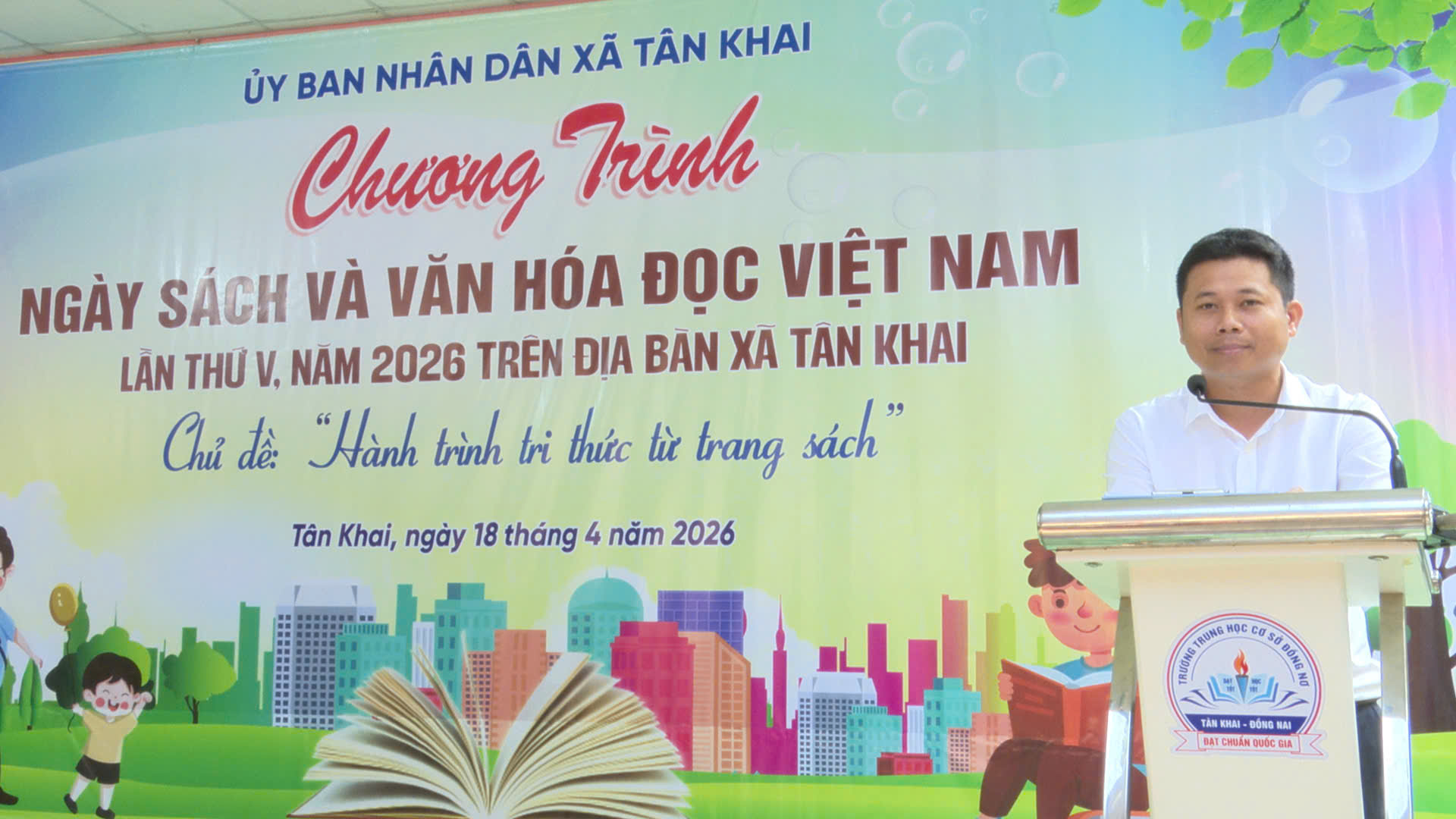 <span style="font-size:14px;">Sáng ngày 18/4, tại Trường THCS Đồng Nơ, UBND xã Tân Khai, tỉnh Đồng Nai tổ chức Ngày Sách và Văn hóa đọc Việt Nam lần thứ V năm 2026 với chủ đề “Hành trình tri thức từ trang sách”.<br />