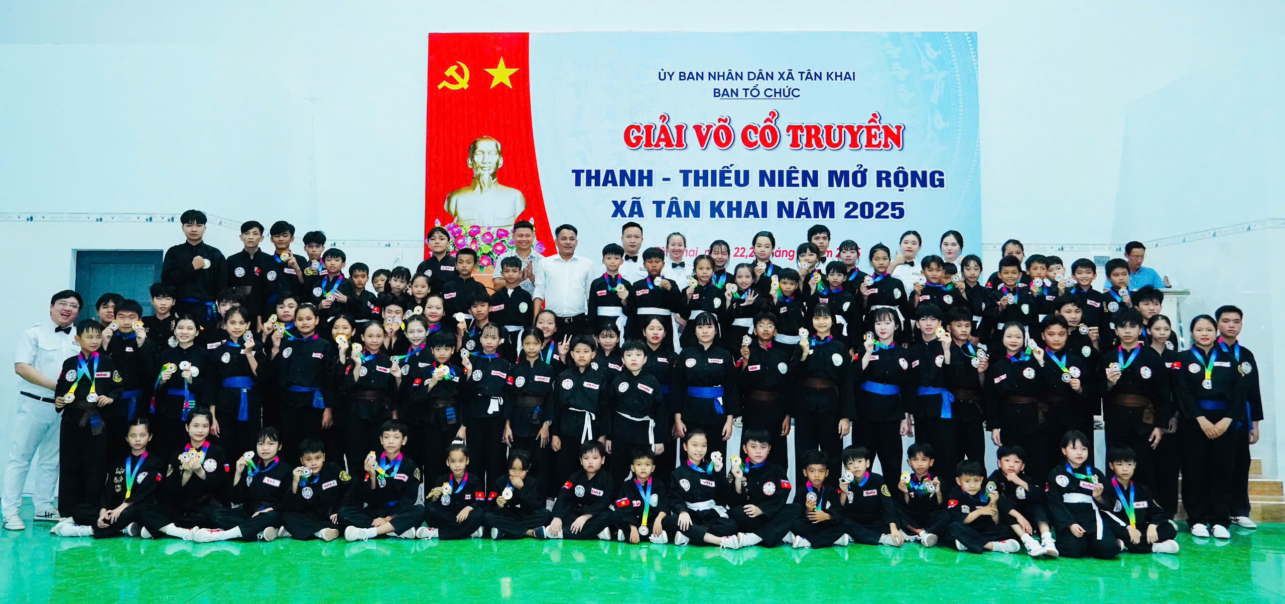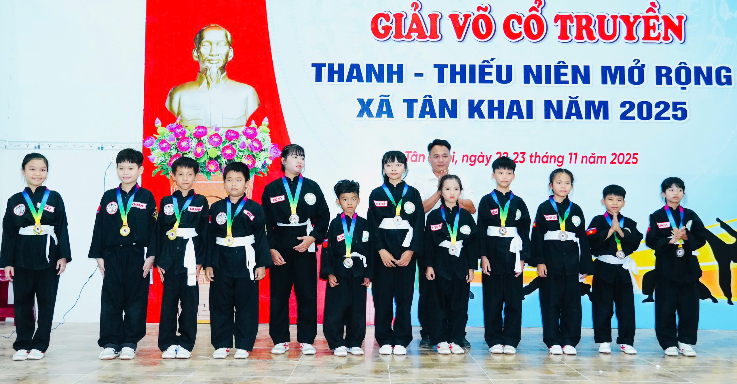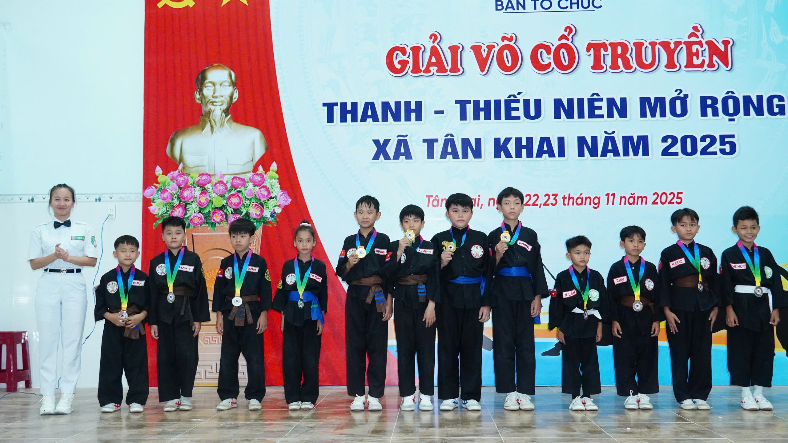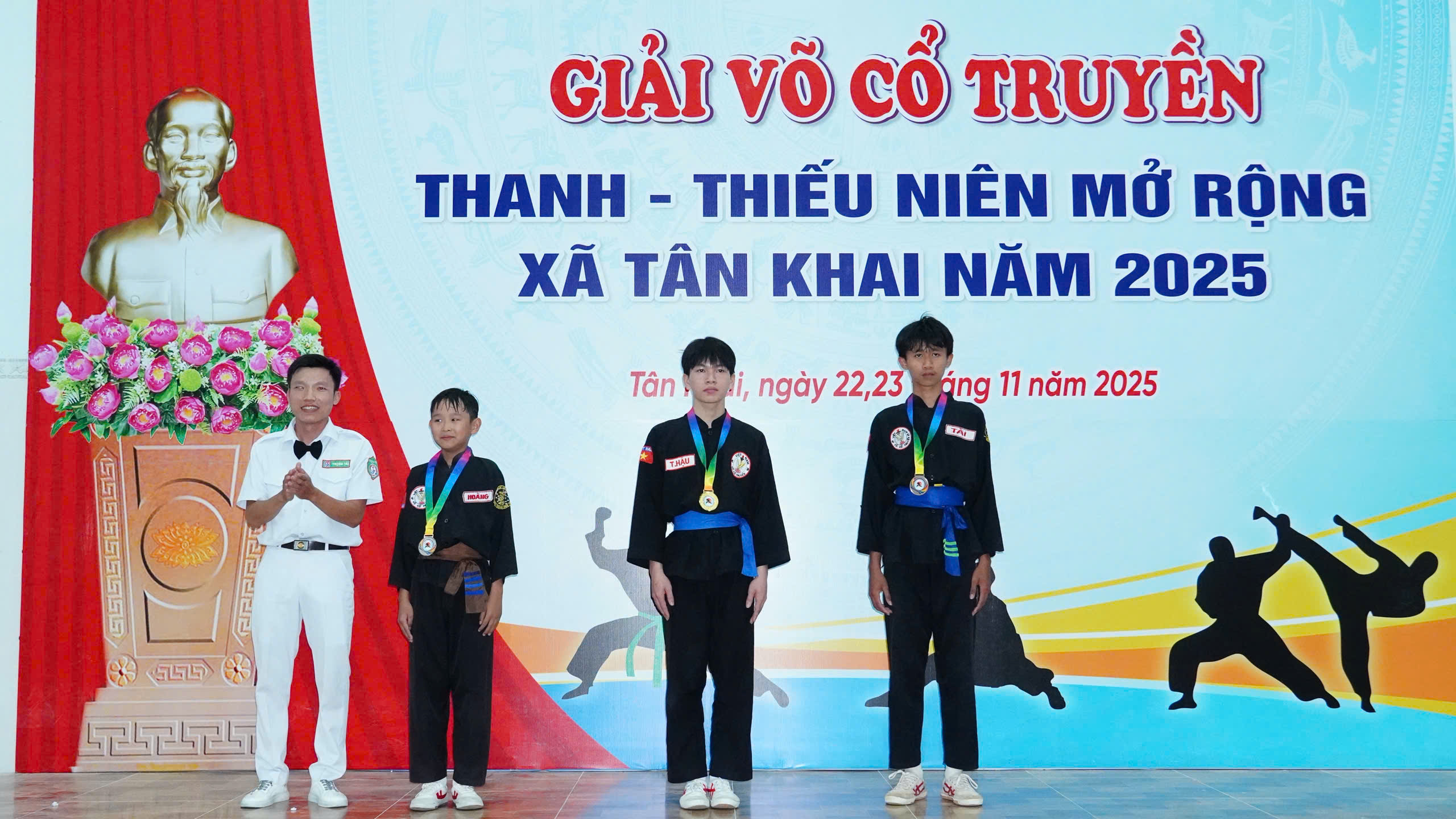 <div style="text-align: justify;"><span style="font-family:Arial,Helvetica,sans-serif;"><span style="font-size:14px;"><span style="line-height:115%"><span style="line-height:115%">&nbsp; &nbsp; &nbsp; Vừa qua, tại trường THCS Tân Khai (thôn 1, xã Tân Khai), UBND xã Tân Khai đã tổ chức bế mạc Giải Võ cổ truyền Thanh – Thiếu niên mở rộng năm 2025.&nbsp;</span></span><span style="line-height:115%"><span style="line-height:115%">Tham dự bế mạc có ông Nguyễn Thanh Phong – phó Trưởng phòng Văn hóa – Xã hội, ông Lê Văn Phú, Giám đốc Trung tâm Dịch vụ tổng hợp xã và đông đảo vận động viên, cổ động viên.</span></span><br />