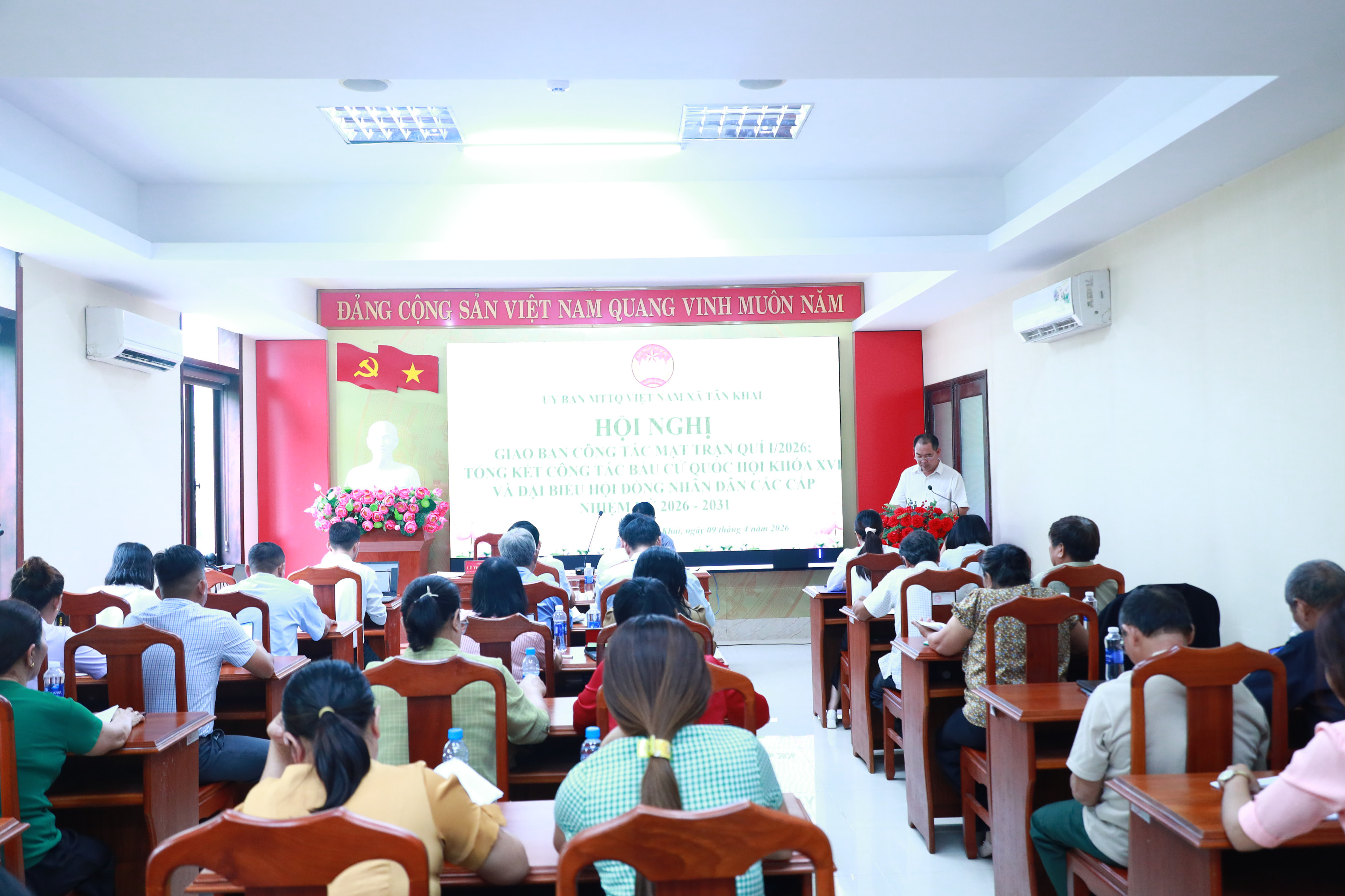Phát biểu chỉ đạo Hội nghị, đồng chí Phan Văn Mạnh - Phó Bí thư Thường trực Đảng ủy xã&nbsp;đánh giá cao kết quả của MTTQ và các tổ chức thành viên, đồng thời đề nghị đổi mới hoạt động, hướng về thôn sóc, đẩy mạnh vận động chỉnh trang đô thị, hỗ trợ, chăm lo các hoàn cảnh khó khăn. Đồng chí tin tưởng, công tác Mặt trận xã Tân Khai sẽ tiếp tục phát triển tích cực, góp phần xây dựng địa phương ổn định, văn minh.
