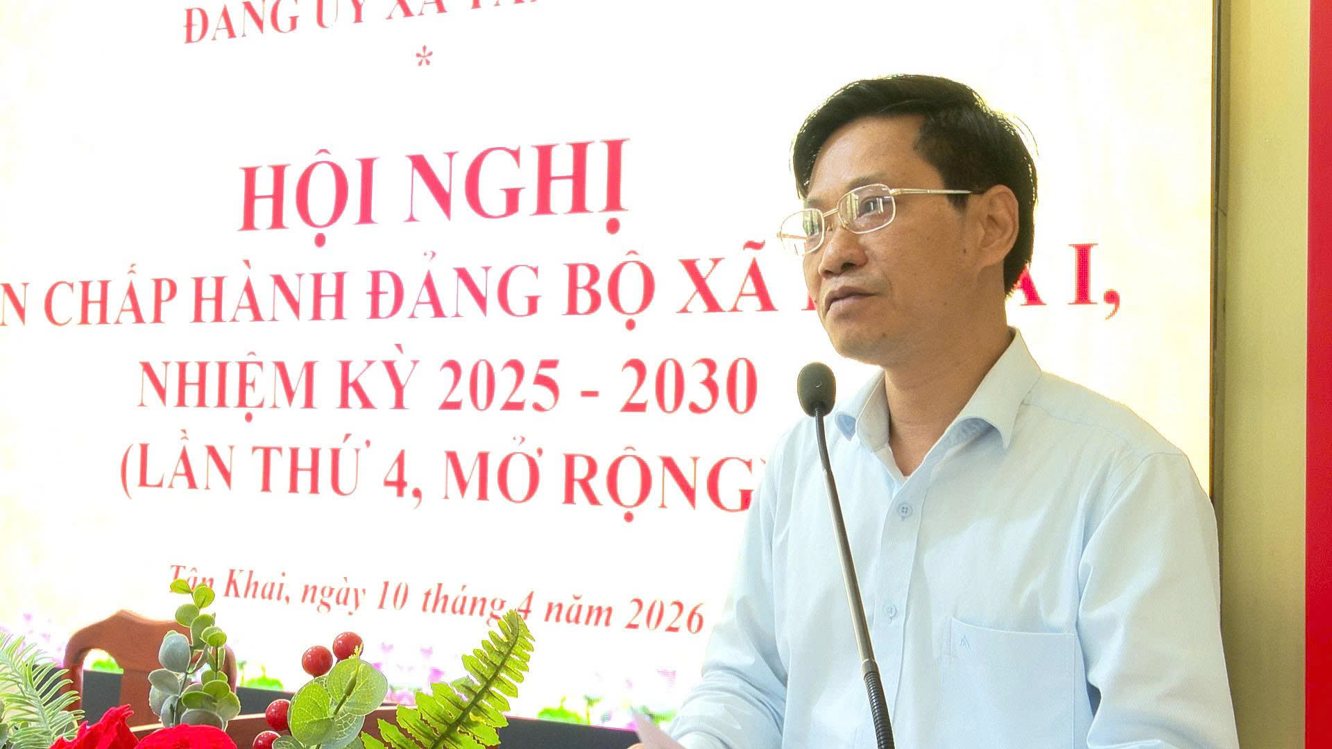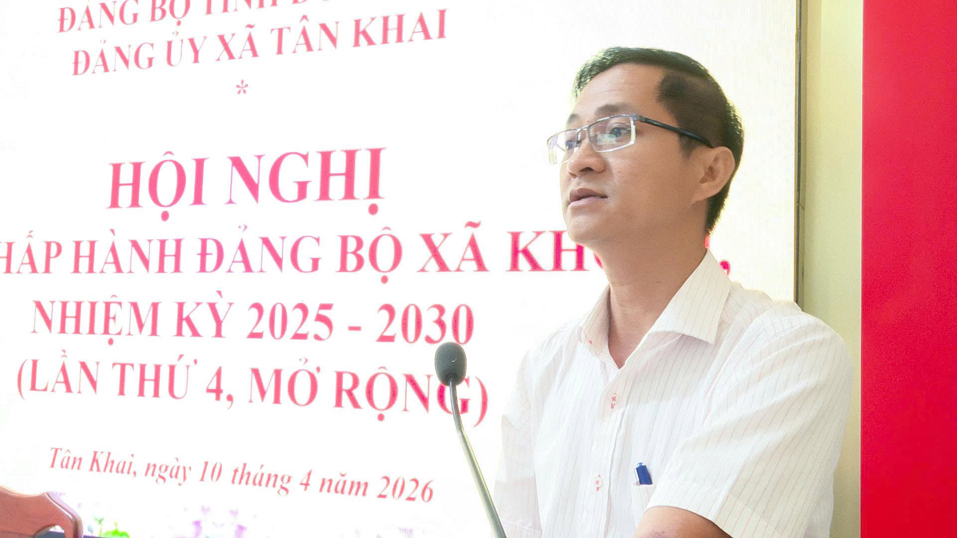 <span style="font-family:Arial,Helvetica,sans-serif;"><span style="font-size:14px;">Sáng ngày 10/4/2026, Đảng bộ xã Tân Khai tổ chức Hội nghị Ban Chấp hành lần thứ 4 (mở rộng), nhiệm kỳ 2025 – 2030 nhằm đánh giá kết quả thực hiện Nghị quyết quý I và đề ra phương hướng, nhiệm vụ quý II năm 2026. Ông Lê Việt Hùng, Phó Chủ nhiệm UBKT Tỉnh ủy dự và phát biểu chỉ đạo tại hội nghị.<br />