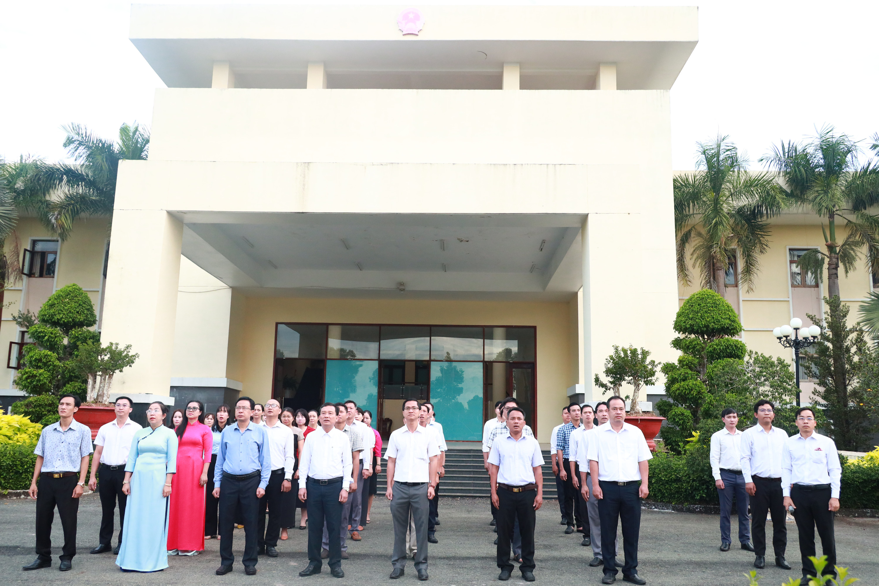 CÁC ĐỒNG CHÍ LÃNH ĐẠO, CÁN BỘ, CÔNG CHỨC, NGƯỜI LAO ĐỘNG XÃ TÂN KHAI CHÀO CỜ THÁNG 01/2026