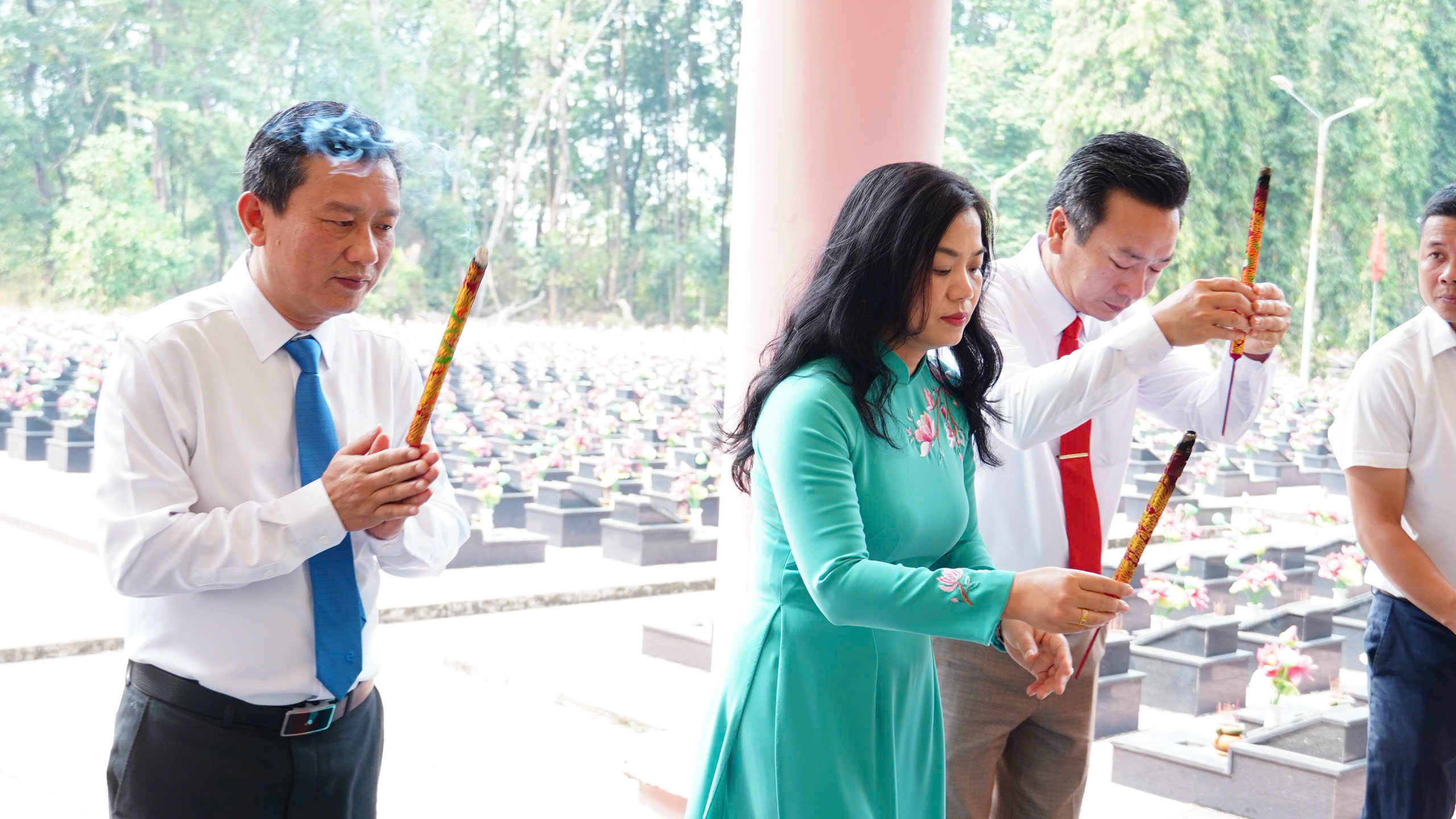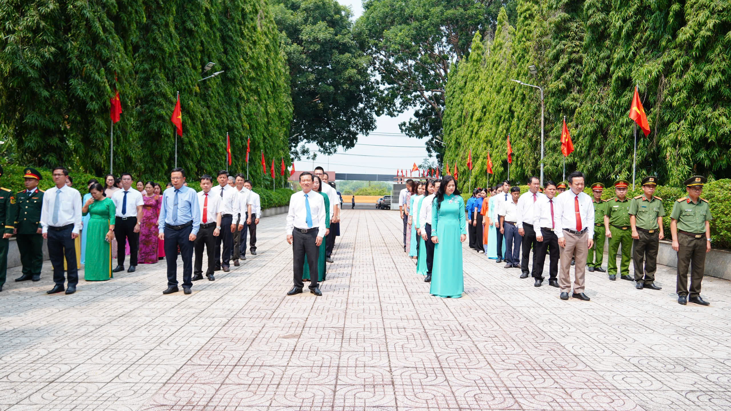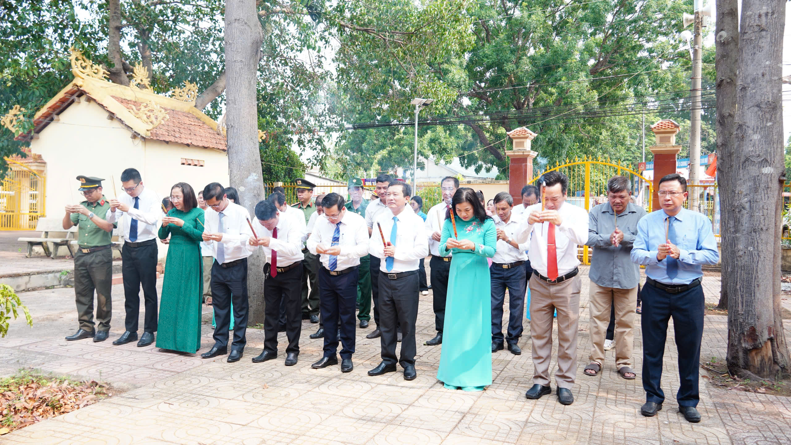 Trong không khí trang nghiêm và thành kính, các đại biểu đã kính cẩn đặt vòng hoa, dâng hương tại Đài tưởng niệm các anh hùng liệt sĩ; dành phút mặc niệm tưởng nhớ Chủ tịch Hồ Chí Minh vĩ đại, tưởng nhớ các Mẹ Việt Nam Anh hùng, các anh hùng liệt sĩ, đồng bào và chiến sĩ đã anh dũng hy sinh vì độc lập, tự do của dân tộc.