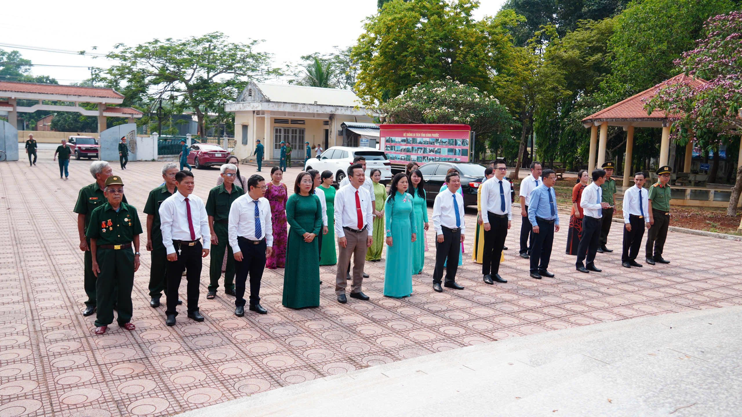 Ngay sau đó, đoàn đã tiếp tục đến dâng hương tại di tích địa điểm Chiến thắng Chốt chặn Tàu Ô – biểu tượng oai hùng của quân và dân Tân Khai trong cuộc kháng chiến chống Mỹ cứu nước. Cùng ngày, lễ dâng hương tại Nhà bia tưởng niệm liệt sĩ xã Tân Khai cũng được tổ chức trang trọng, đầy xúc động.