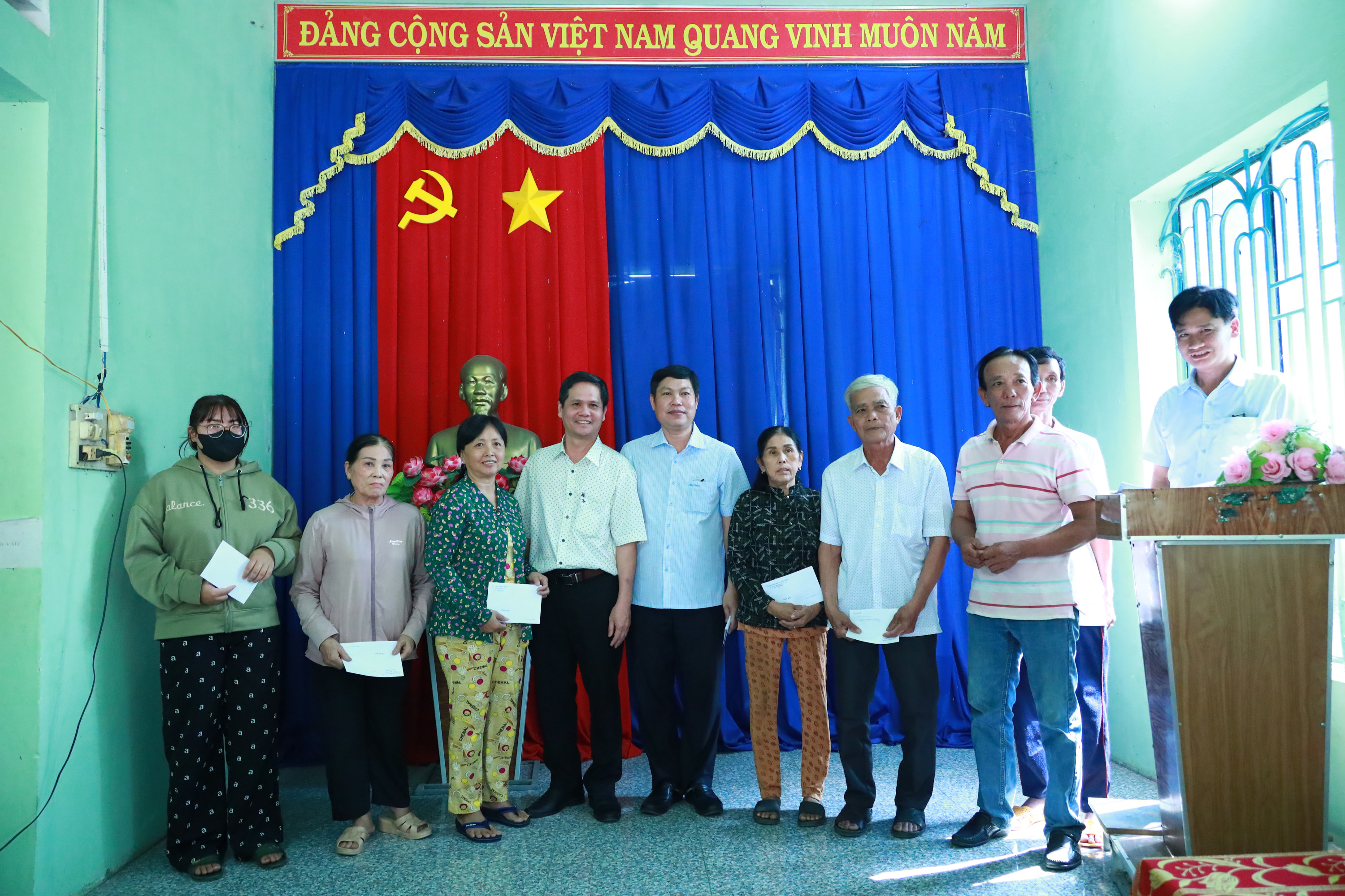 Tại buổi gặp gỡ, đoàn đã ân cần thăm hỏi đời sống, chia sẻ khó khăn và trao tặng 31 phần quà Tết của Đảng ủy, HĐND, UBND, Ủy ban MTTQ Việt Nam các xã gửi đến các hộ dân. Những phần quà tuy giá trị không lớn nhưng chứa đựng tình cảm, sự quan tâm, sẻ chia, góp phần mang đến không khí Tết ấm áp, nghĩa tình cho bà con vùng kinh tế mới Bến Tre, thôn Tân Lập, xã Tân Khai.