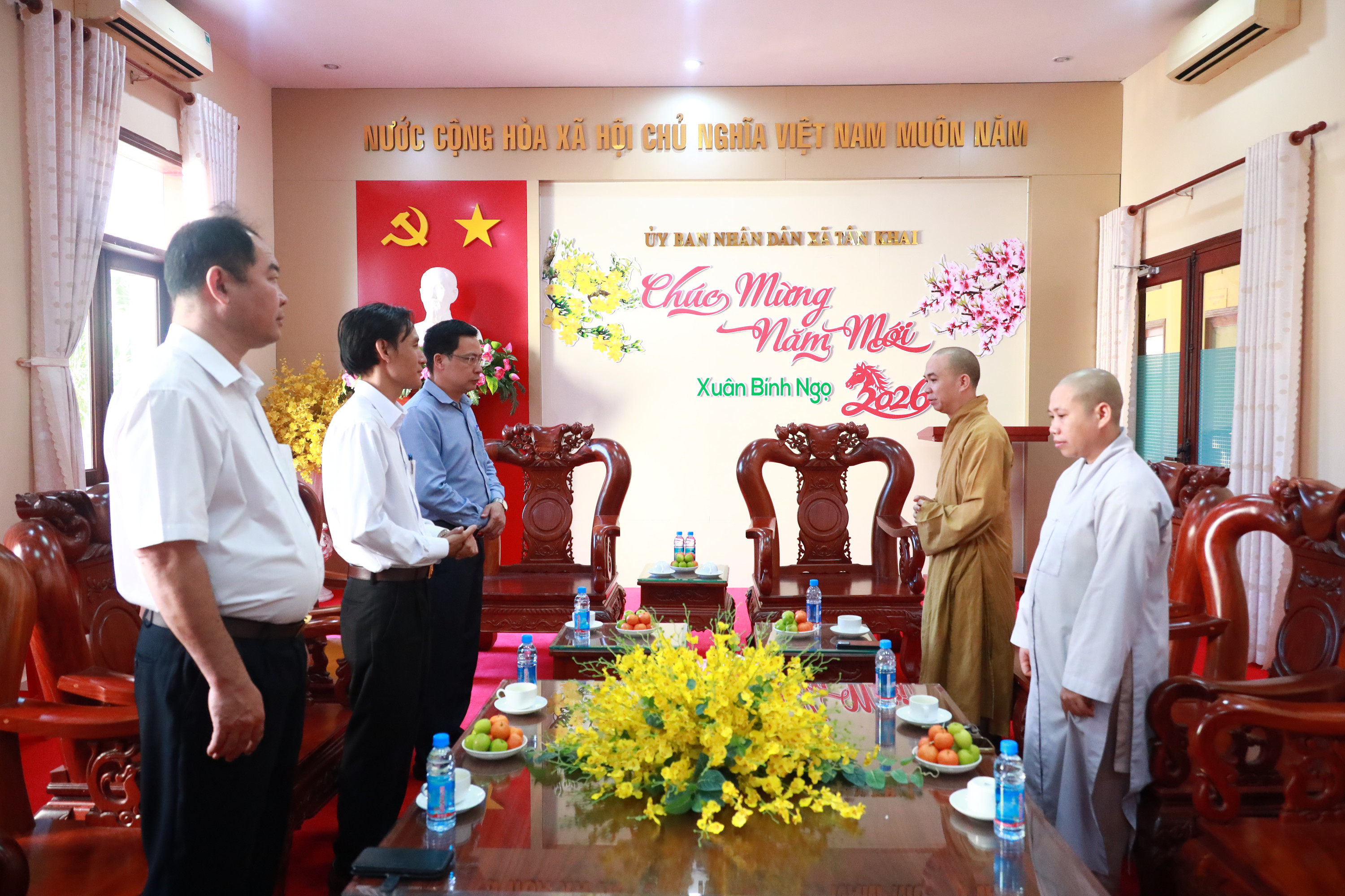 Sáng ngày 2/2, đại diện chùa Thanh Lâm đã đến thăm, chúc Tết Ủy ban Nhân dân (UBND) và Ủy ban Mặt trận Tổ quốc (MTTQ) Việt Nam xã Tân Khai.