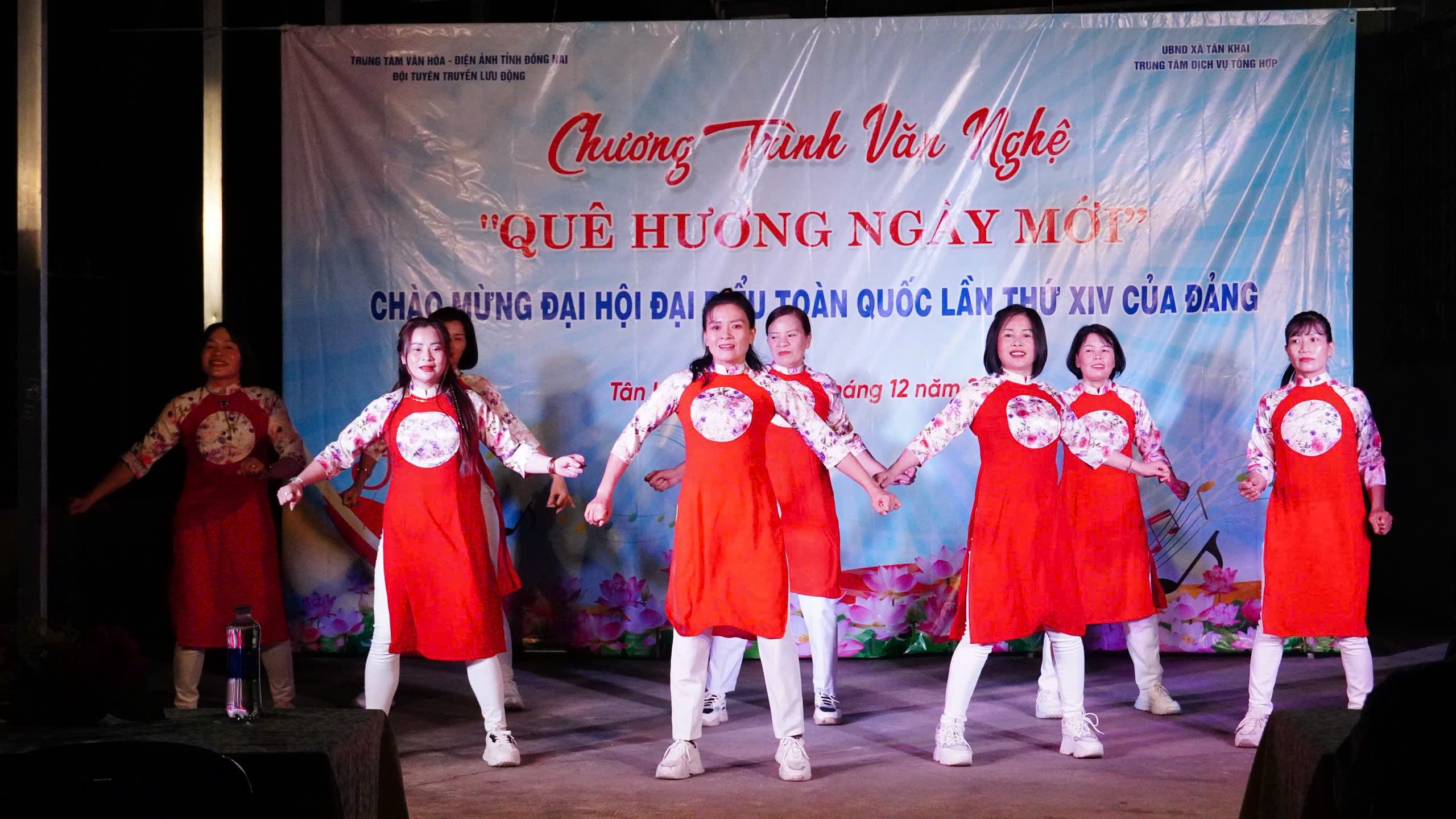 Tối 17/12, tại Nhà văn hóa Thôn Đồng Nơ 2, xã Tân Khai, UBND xã phối hợp với Trung tâm Văn hóa – Điện ảnh tỉnh Đồng Nai tổ chức chương trình văn nghệ “Quê hương ngày mới”, tuyên truyền Nghị quyết Đại hội đại biểu Đảng bộ tỉnh Đồng Nai lần thứ I, nhiệm kỳ 2025 - 2030, chào mừng Đại hội đại biểu toàn quốc lần thứ XIV của Đảng.