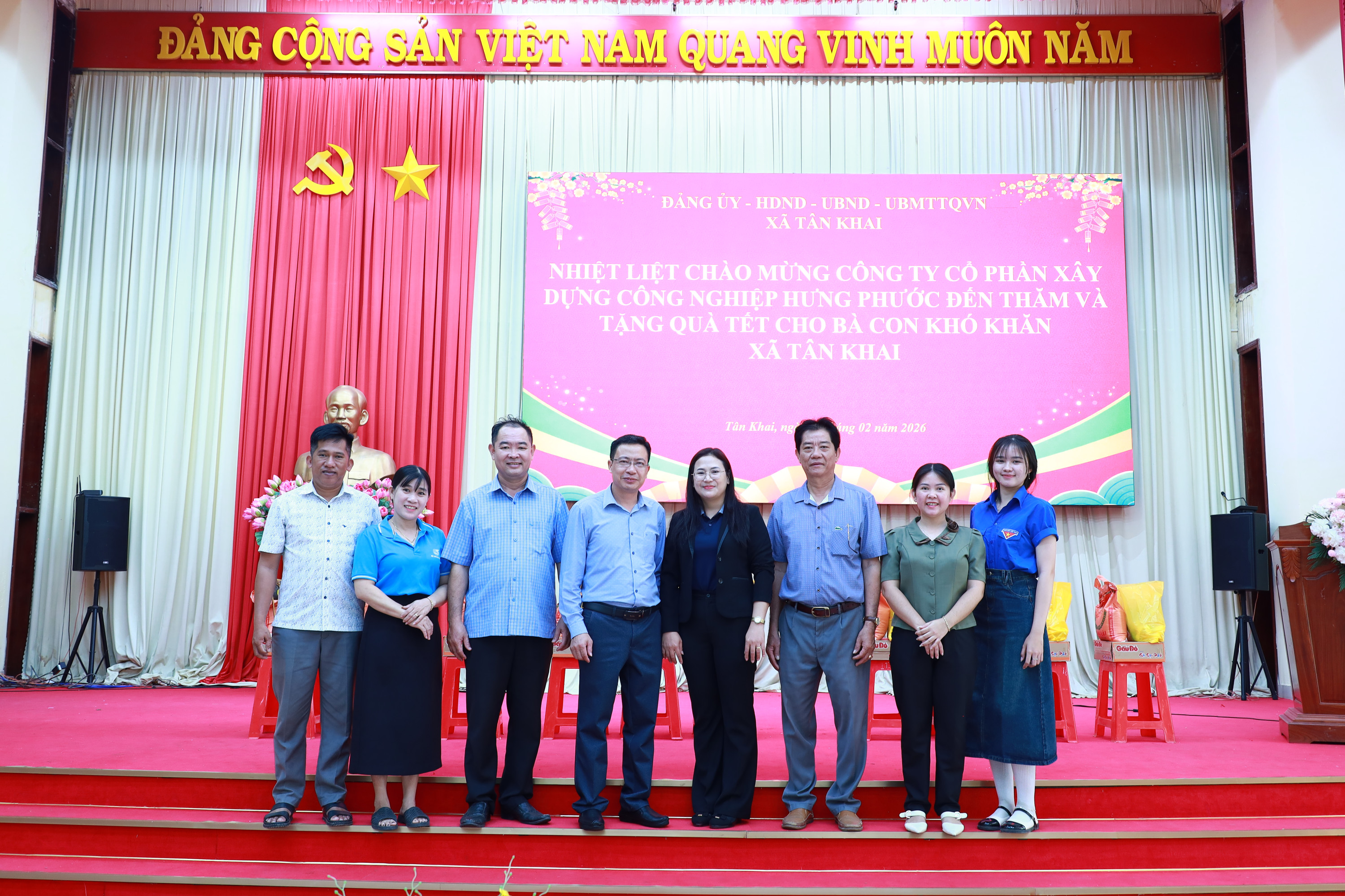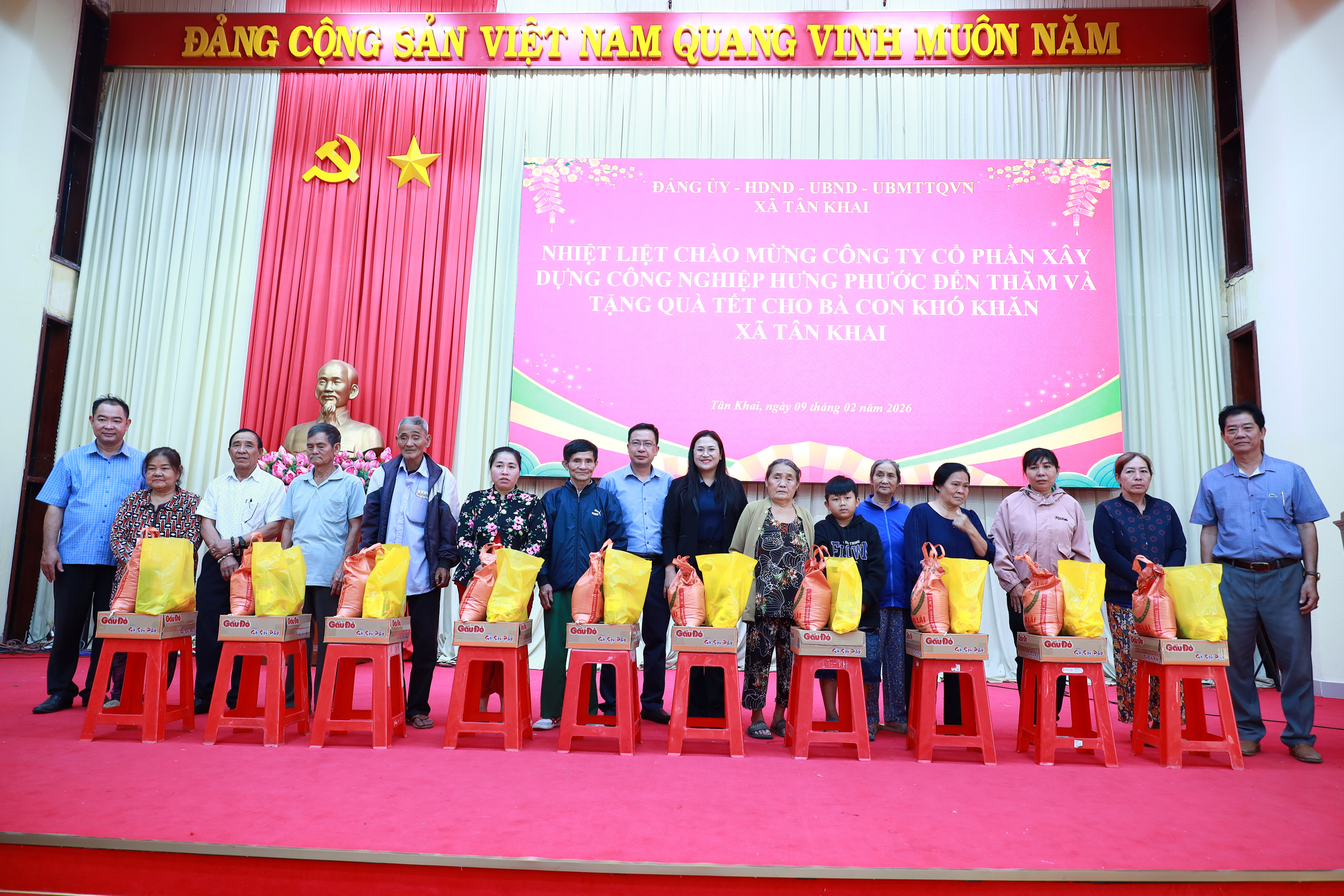 Sáng ngày 09/02/2026, trong không khí ấm áp của những ngày đón Tết cổ truyền của dân tộc, Ủy viên Ban Thường vụ, Phó Chủ tịch UBND xã Nguyễn Viết Đợi đã vận động Công ty Cổ phần Xây dựng Công nghiệp Hưng Phước và Ngân hàng Thương mại Cổ phần Đầu tư và Phát triển Việt Nam (BIDV), Phòng Giao Dịch Hớn Quản trao tặng 115 phần quà Tết cho bà con có hoàn cảnh khó khăn trên địa bàn.