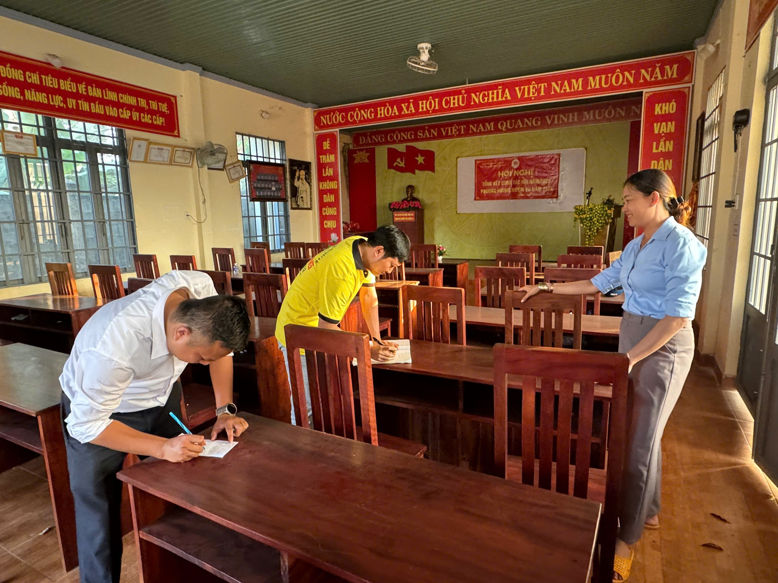 KIỂM TRA CƠ SỞ VẬT CHẤT TẠI CÁC ĐIỂM BẦU CỬ TRÊN ĐỊA BÀN XÃ