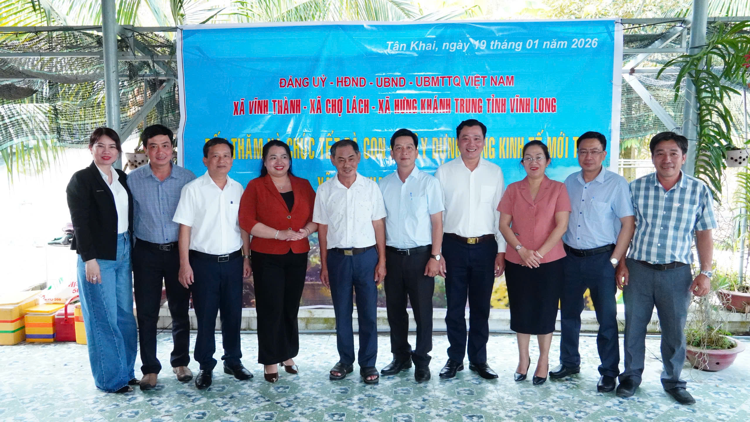 Trong không khí ấm áp, thân mật, sáng 19/01, đoàn lãng đạo Đảng ủy – HĐND – UBND - Ủy ban MTTQ Việt Nam các xã: Vĩnh Thành, Chợ Lách, Hưng Khánh Trung, tỉnh Vĩnh Long đã đến thăm, chúc tết UBND xã.