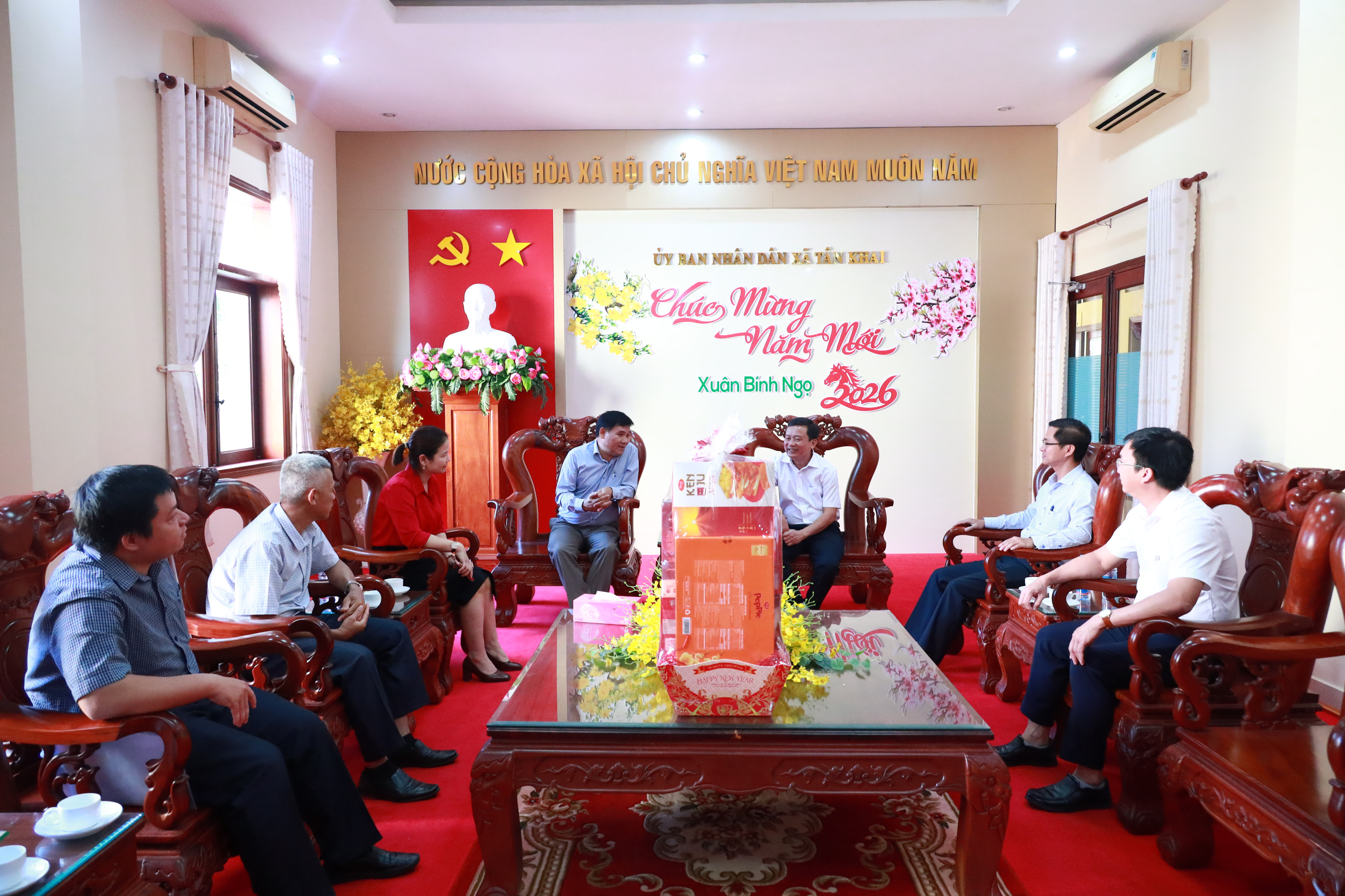 LÃNH ĐẠO CÔNG TY TNHH MỘT THÀNH VIÊN CAO SU BÌNH LONG THĂM, CHÚC TẾT UBND XÃ TÂN KHAI
