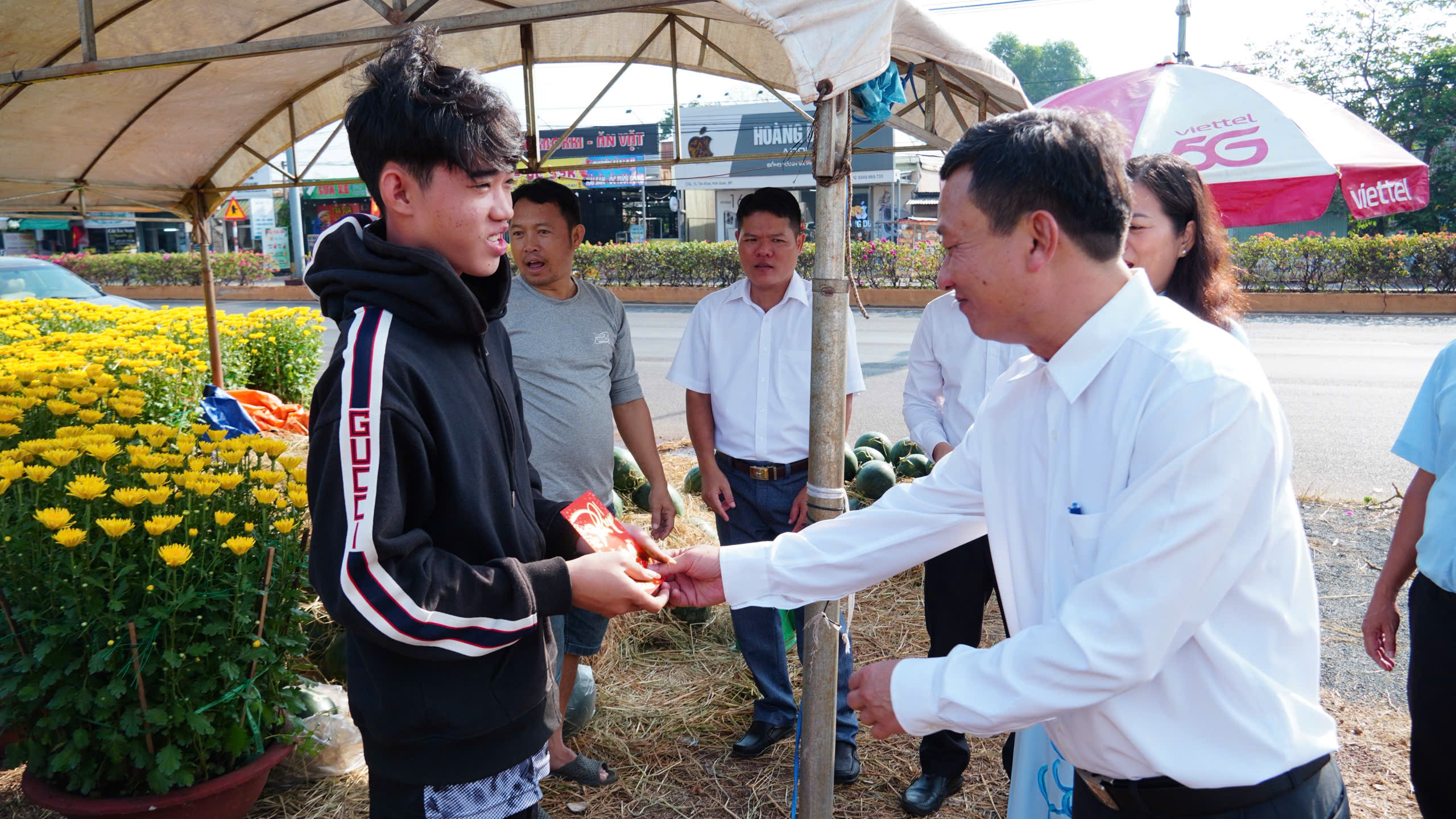Tại các điểm buôn bán, các đồng chí lãnh đạo xã ân cần thăm hỏi tình hình kinh doanh, đời sống của bà con tiểu thương; đồng thời gửi lời chúc năm mới an khang, buôn may bán đắt, đón một mùa Xuân ấm no, hạnh phúc.