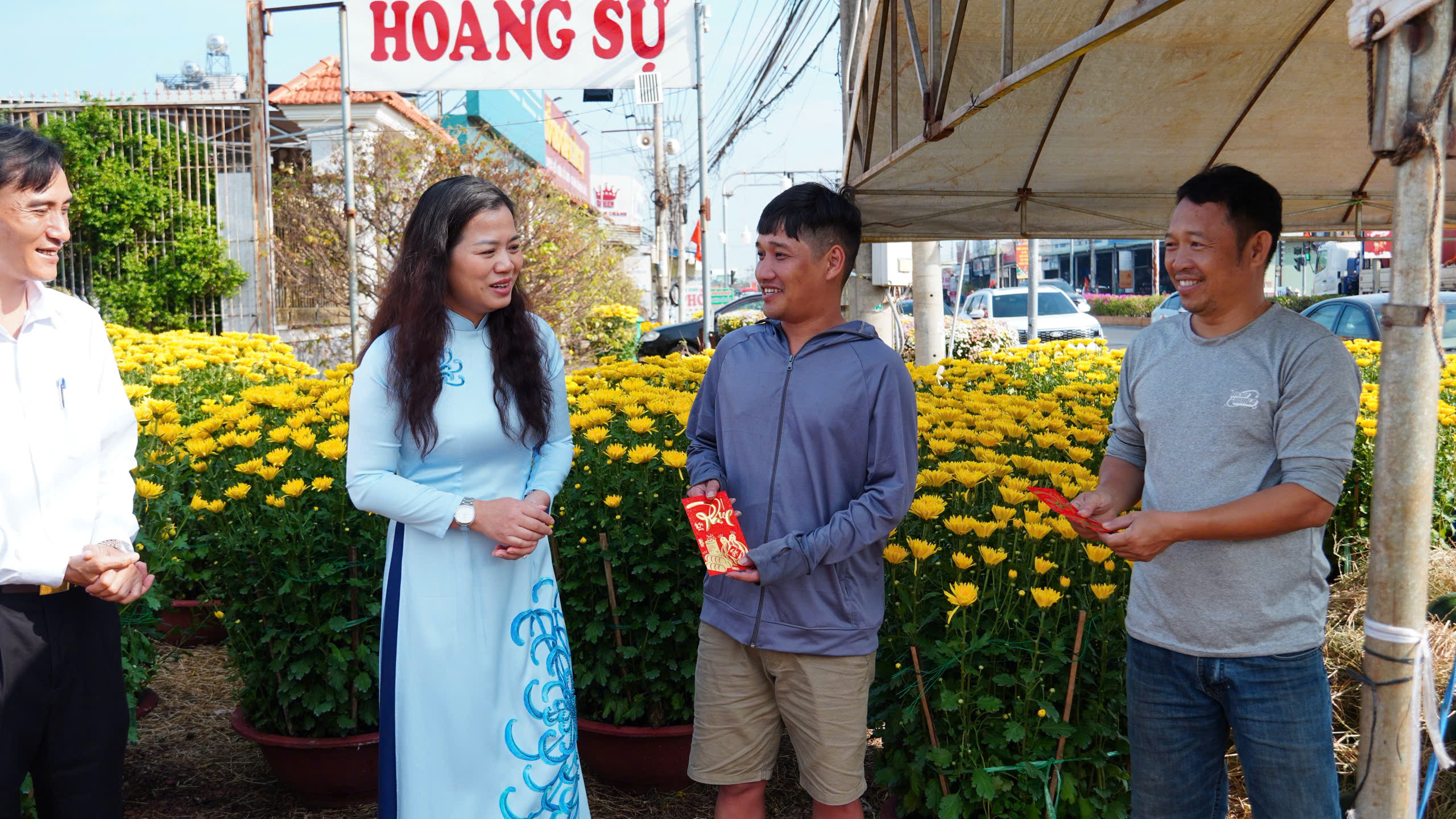 LÃNH ĐẠO XÃ TÂN KHAI THĂM, TẶNG QUÀ MỘT SỐ TIỂU THƯƠNG KINH DOANH HOA XUÂN BÍNH NGỌ 2026