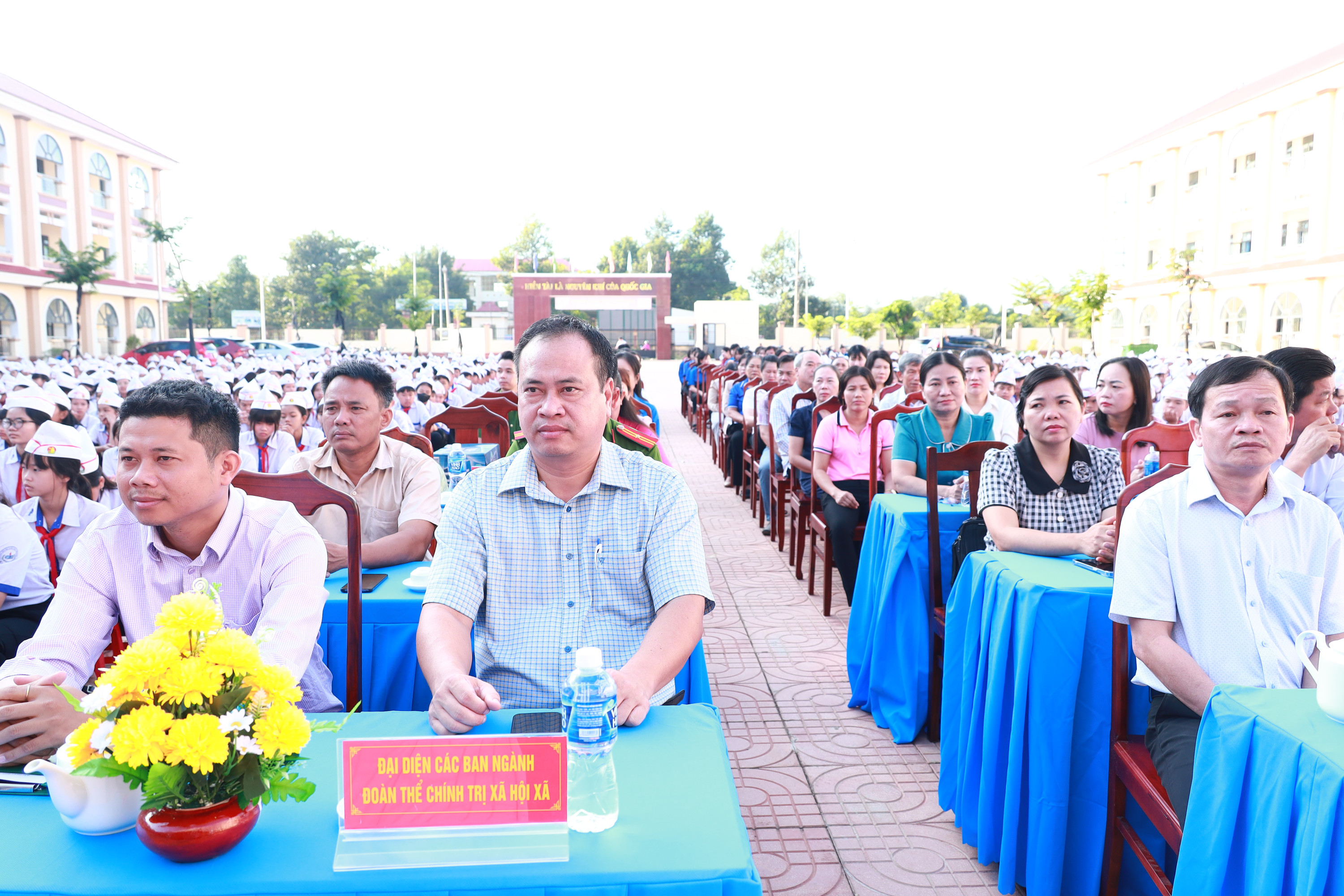 Tham dự có ông Nguyễn Thanh Phong - Phó Trưởng phòng Văn hóa – Xã hội; Lãnh đạo các phòng, ban, đơn vị, tổ chức chính trị – xã hội, Đại diện Ban Giám hiệu các trường, Bí thư chi bộ, Trưởng thôn, Trưởng ban Công tác mặt trận, đoàn viên, hội viên, giáo viên và học sinh nhà trường đã tham dự.