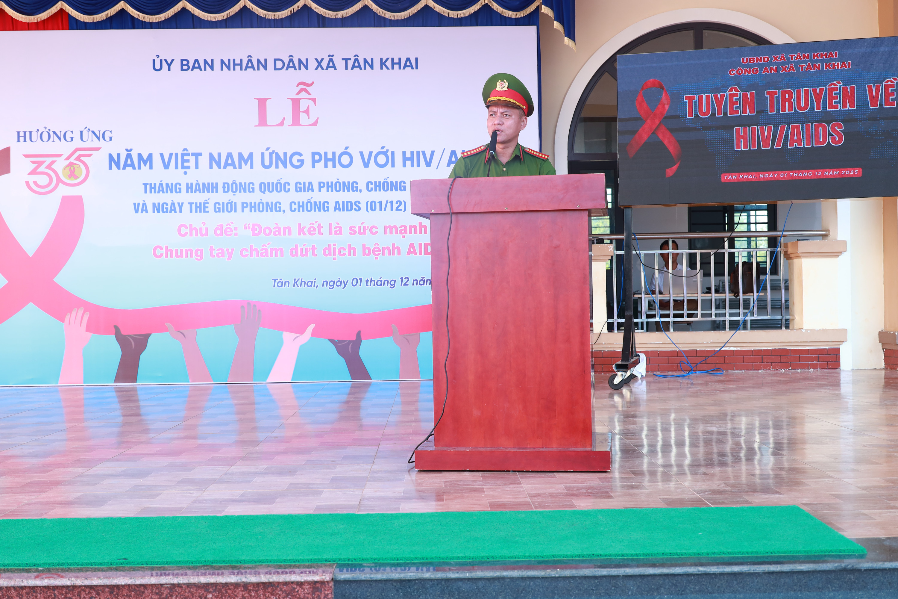 Sáng 01/12, tại Trường THCS Tân Khai, UBND xã đã tổ chức lễ hưởng ứng 35 năm Việt Nam ứng phó với HIV/AIDS, tháng hành động quốc gia phòng, chống HIV/AIDS và ngày Thế giới phòng, chống AIDS (01/12) năm 2025.
