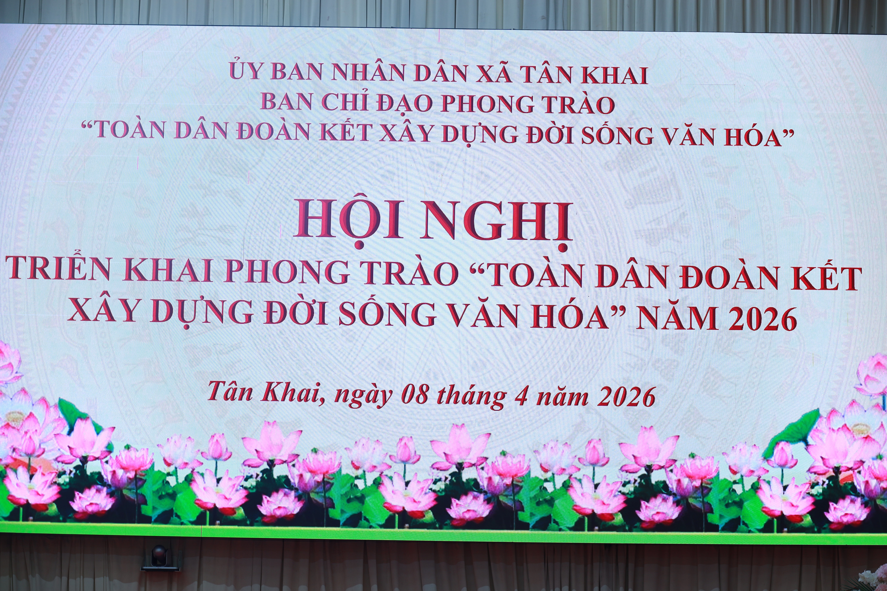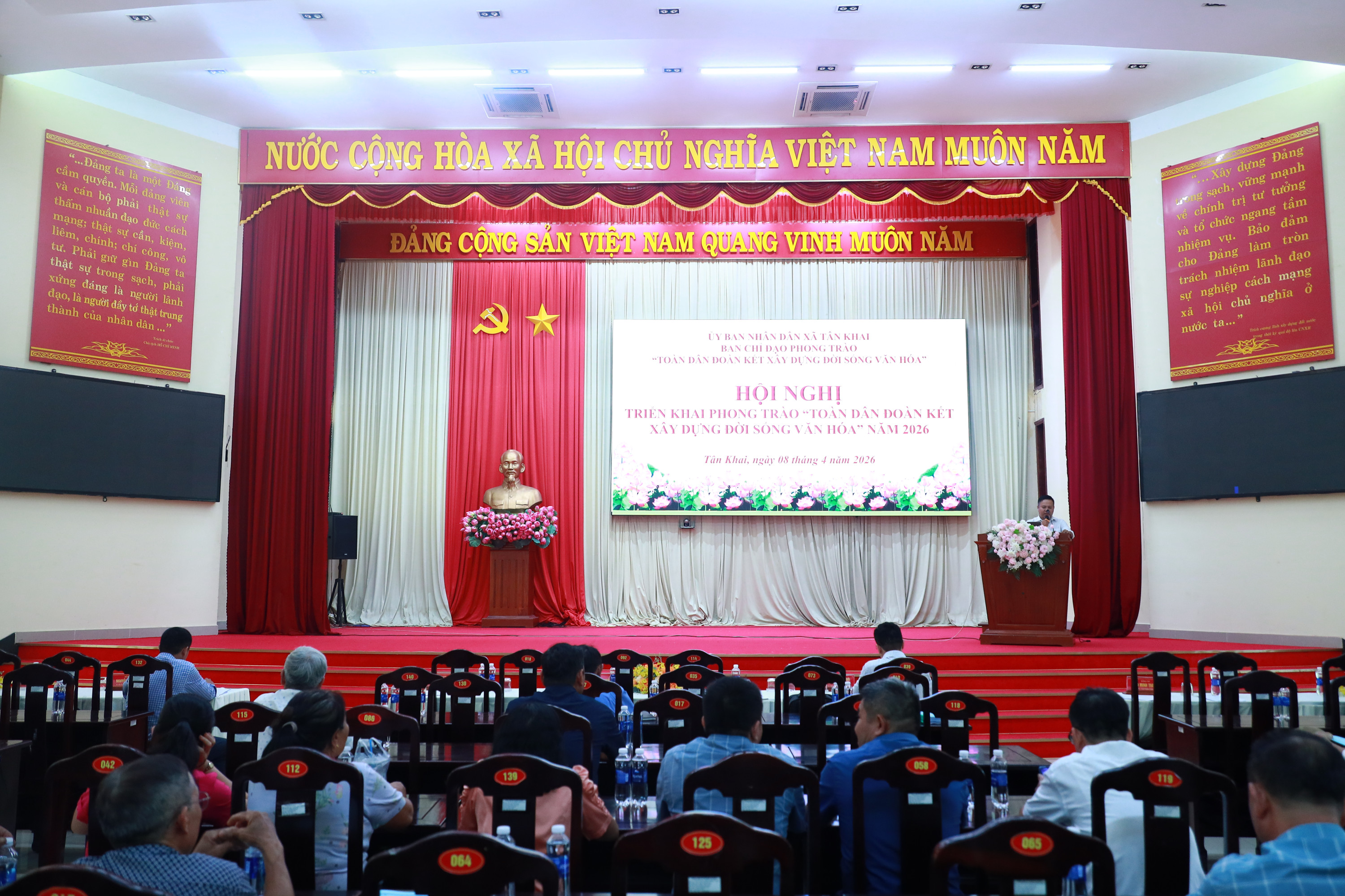 Chiều 8/4, UBND xã Tân Khai đã tổ chức Hội nghị triển khai Kế hoạch thực hiện phong trào “Toàn dân đoàn kết xây dựng đời sống văn hoá” năm 2026. Phó Chủ tịch UBND xã Nguyễn Viết Đợi, Phó ban Thường trực Ban Chỉ đạo dự và phát biểu chỉ đạo.