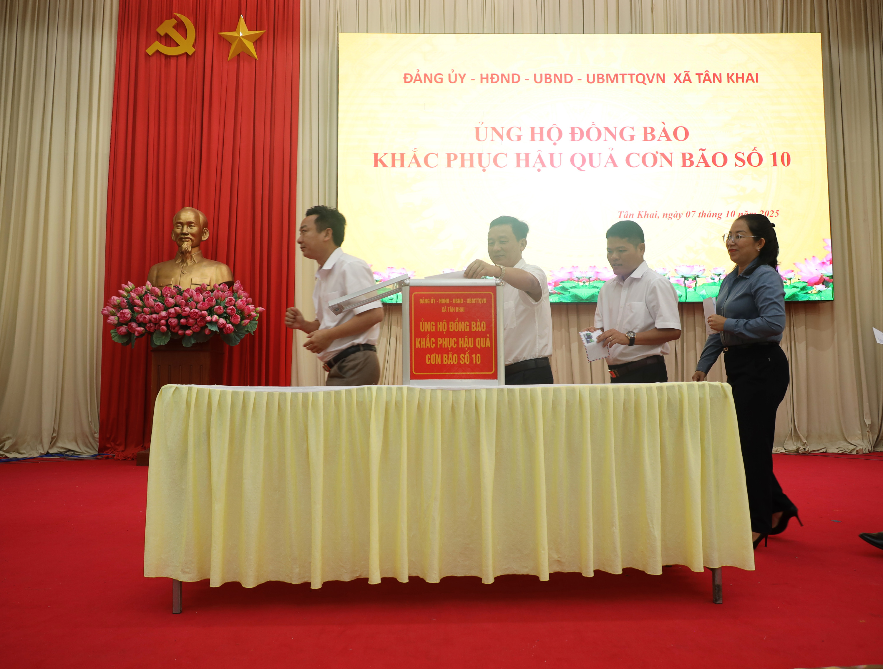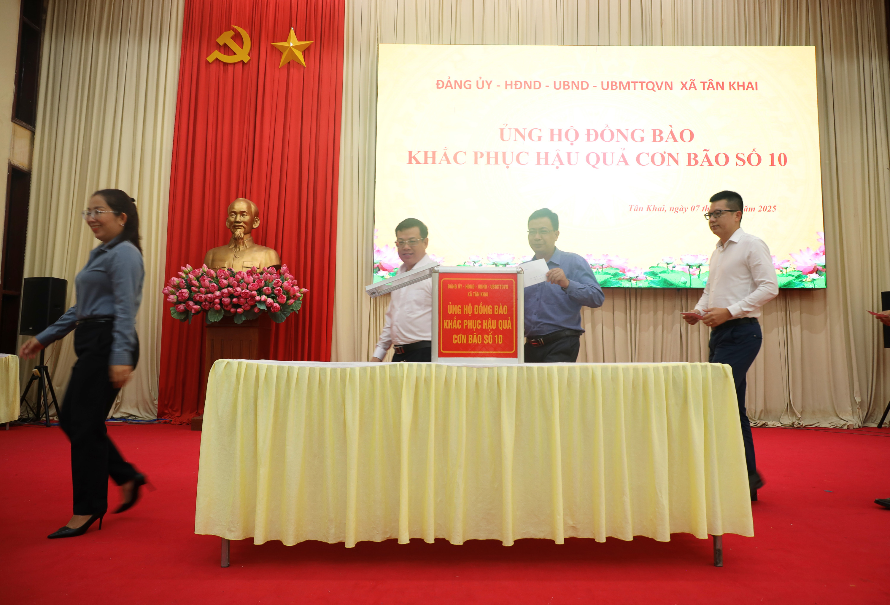 Sáng 7 tháng 10, tại hội trường UBND xã Tân Khai, Đảng ủy – HĐND – UBND – Ủy ban Mặt trận Tổ quốc Việt Nam xã đã tổ chức chương trình vận động ủng hộ đồng bào các tỉnh, thành phố khắc phục hậu quả do cơn bão số 10 (BUALOI) gây ra.