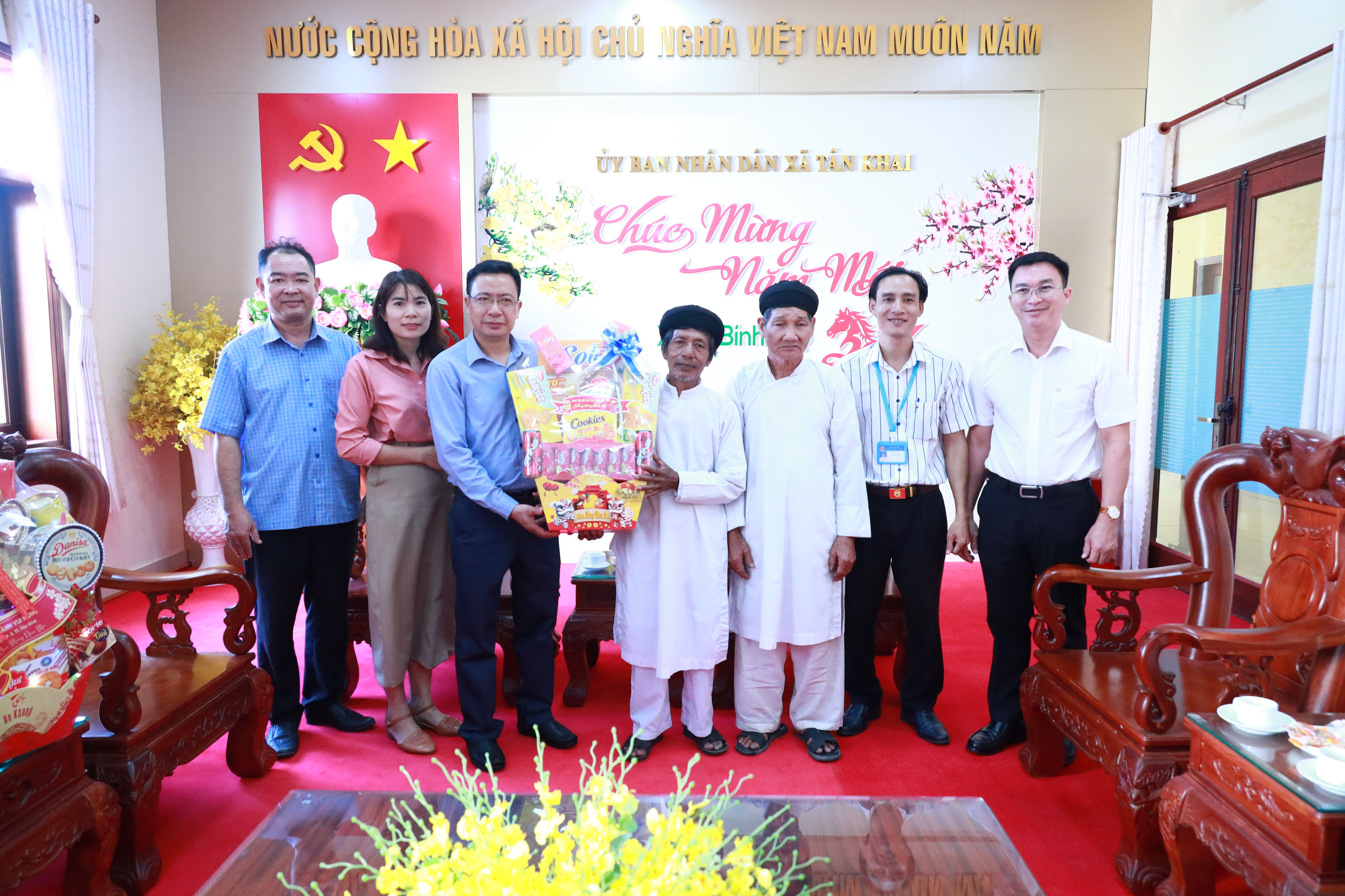 Phó Chủ tịch UBND xã Nguyễn Viết Đợi cùng đại diện MTTQ và các ban, ngành tiếp đoàn. Tại buổi gặp mặt, đại diện các tổ chức tôn giáo chúc mừng năm mới lãnh đạo địa phương, đồng thời khẳng định tinh thần đồng hành cùng chính quyền trong xây dựng khối đại đoàn kết toàn dân tộc, tích cực tham gia các hoạt động nhân đạo, từ thiện, chăm lo đời sống Nhân dân.