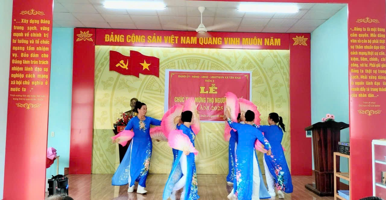Nhân dịp kỷ niệm 35 năm Ngày Quốc tế Người cao tuổi (01/10) và thực hiện Kế hoạch số 37/KH-UBND ngày 26/9/2025 của UBND xã Tân Khai về việc tổ chức Lễ chúc thọ, mừng thọ Người cao tuổi. Chiều ngày 30 tháng 9 năm 2025, Chi bộ, Ban quản lý, Ban Công tác Mặt trận thôn 3 đã tổ chức Lễ chúc thọ, mừng thọ người cao tuổi trên địa bàn thôn 3 năm 2025. Đây là hoạt động thường niên, thể hiện truyền thống “Kính lão, trọng thọ”, sự quan tâm, tri ân của cấp ủy, chính quyền và Nhân dân đối với người cao tuổi – lớp người đã có nhiều công lao, đóng góp cho quê hương, đất nước.