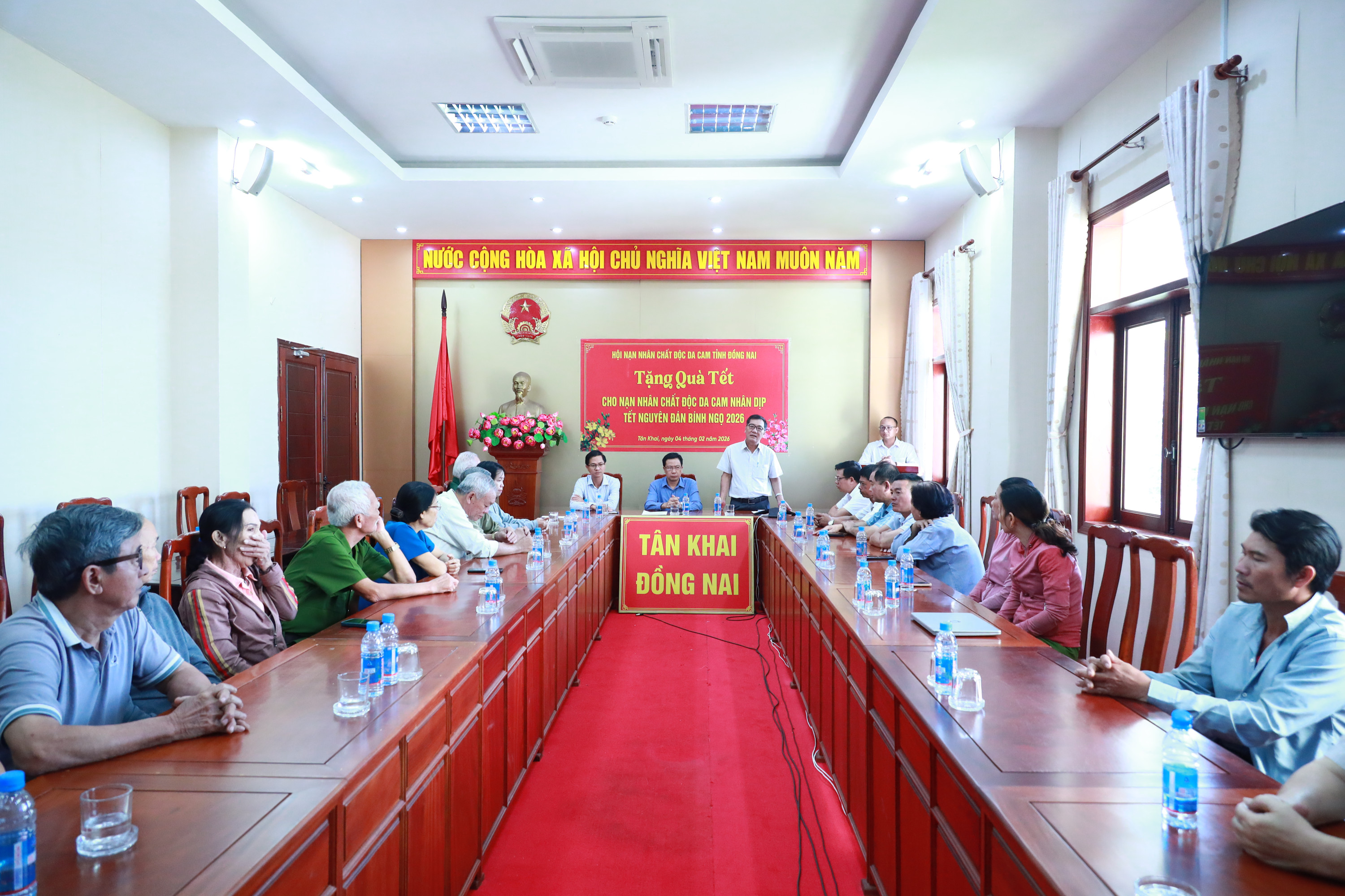 Trong không khí rộn ràng của mùa xuân đang về, với tinh thần “Tương thân tương ái – Không ai bị bỏ lại phía sau”, sáng ngày 04/02, tại trụ sở UBND xã Tân Khai, Hội Nạn nhân chất độc da cam/dioxin tỉnh phối hợp với Ủy ban nhân dân xã tổ chức trao tặng quà Tết cho 20 nạn nhân chất độc da cam nhân dịp Tết Nguyên đán Bính Ngọ năm 2026.