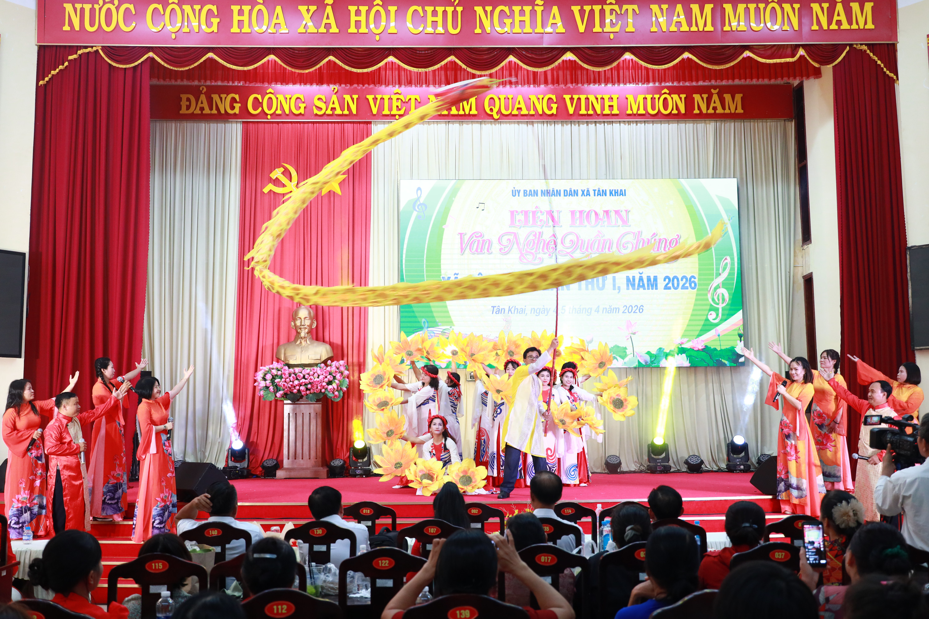 Ngày 05/4/2026, UBND xã Tân Khai đã tổ chức Liên hoan Văn nghệ quần chúng lần thứ I năm 2026 với chủ đề “Tân Khai – Âm vang khúc hát quê hương”. Liên hoan thu hút sự tham gia của 14 đơn vị với hơn 300 diễn viên là cán bộ, nhân dân và các đội văn nghệ đến từ các thôn, sóc, trường học trên địa bàn.