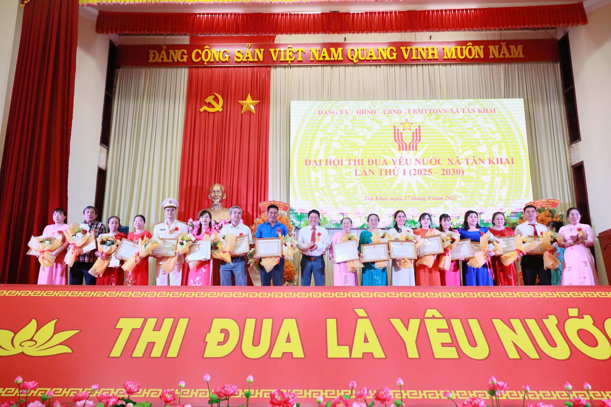 Chiều 27/8/2025, tại xã Tân Khai, Đại hội Thi đua yêu nước lần thứ I, (2025 – 2030) đã long trọng diễn ra với sự tham dự của 124 đại biểu, gồm khách mời và các điển hình tiên tiến, xuất sắc được bầu chọn từ các cơ quan, đơn vị, thôn, sóc; đại diện tiêu biểu cho các tầng lớp trí thức và Nhân dân trên địa bàn xã.