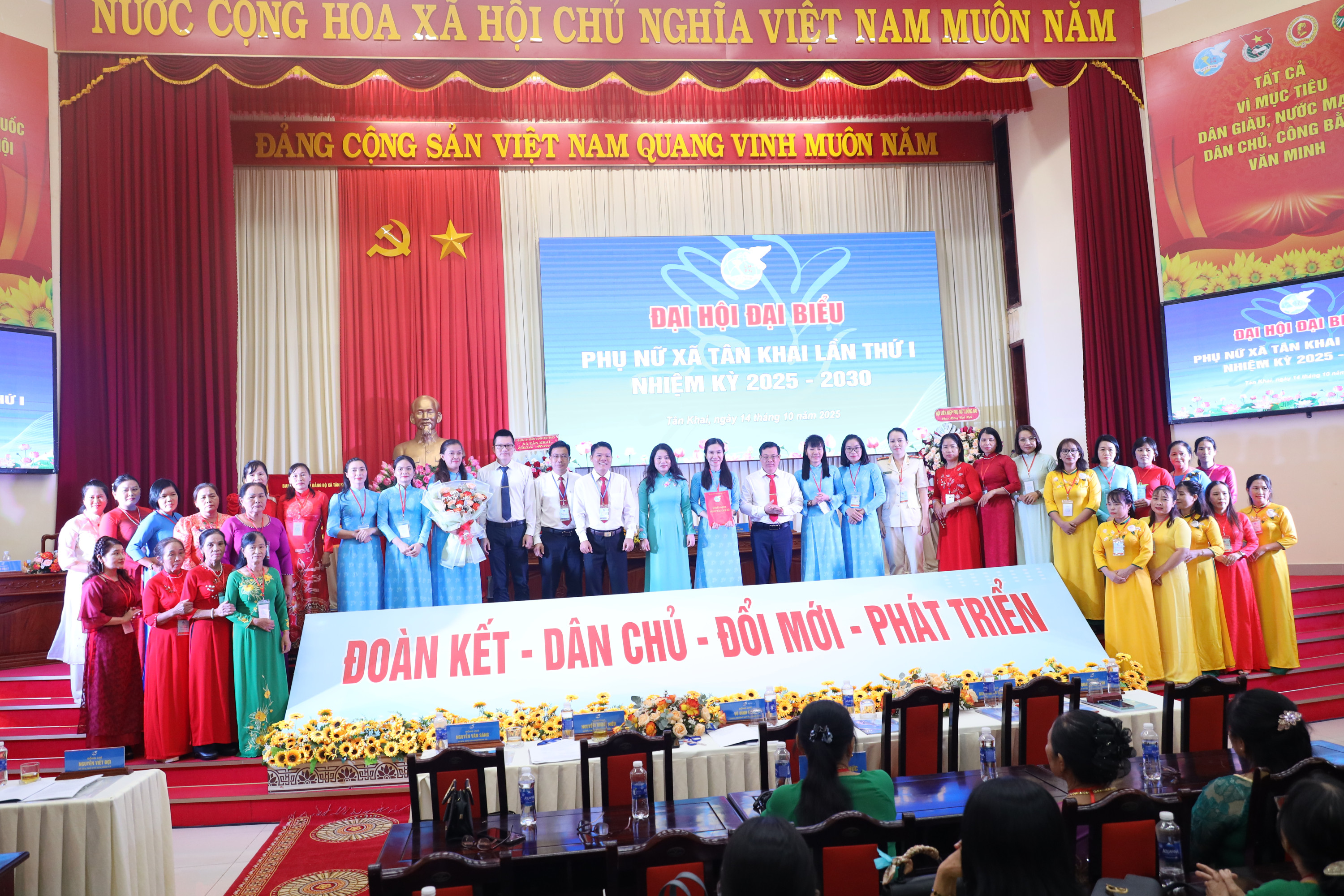 Theo đó trong nhiệm kỳ qua, (2021-2025), được sự quan tâm lãnh, chỉ đạo của các cấp, Hội Liên hiệp Phụ nữ xã đã không ngừng phát huy vai trò, đoàn kết và sáng tạo, thực hiện đạt và vượt 10/10 chỉ tiêu Nghị quyết đề ra. Nổi bật: phong trào “Hỗ trợ phụ nữ khởi nghiệp đã hỗ trợ 8 lượt Hội viên với tổng số tiền 220 triệu đồng; mô hình “Heo đất Tân Khai đồng hành cùng hoàn cảnh khó khăn, hỗ trợ phụ nữ khởi nghiệp” huy động được trên 537 triệu đồng, kịp thời giúp đỡ 254 phụ nữ và trẻ em có hoàn cảnh khó khăn. Chương trình “Mẹ đỡ đầu” đã nhận đỡ đầu 15 cháu có hoàn cảnh khó khăn; Hội phối hợp thực hiện 21 tuyến đường hoa, 05 mô hình thu gom rác thải, phát động nhiều chiến dịch vệ sinh môi trường xanh - sạch - đẹp.