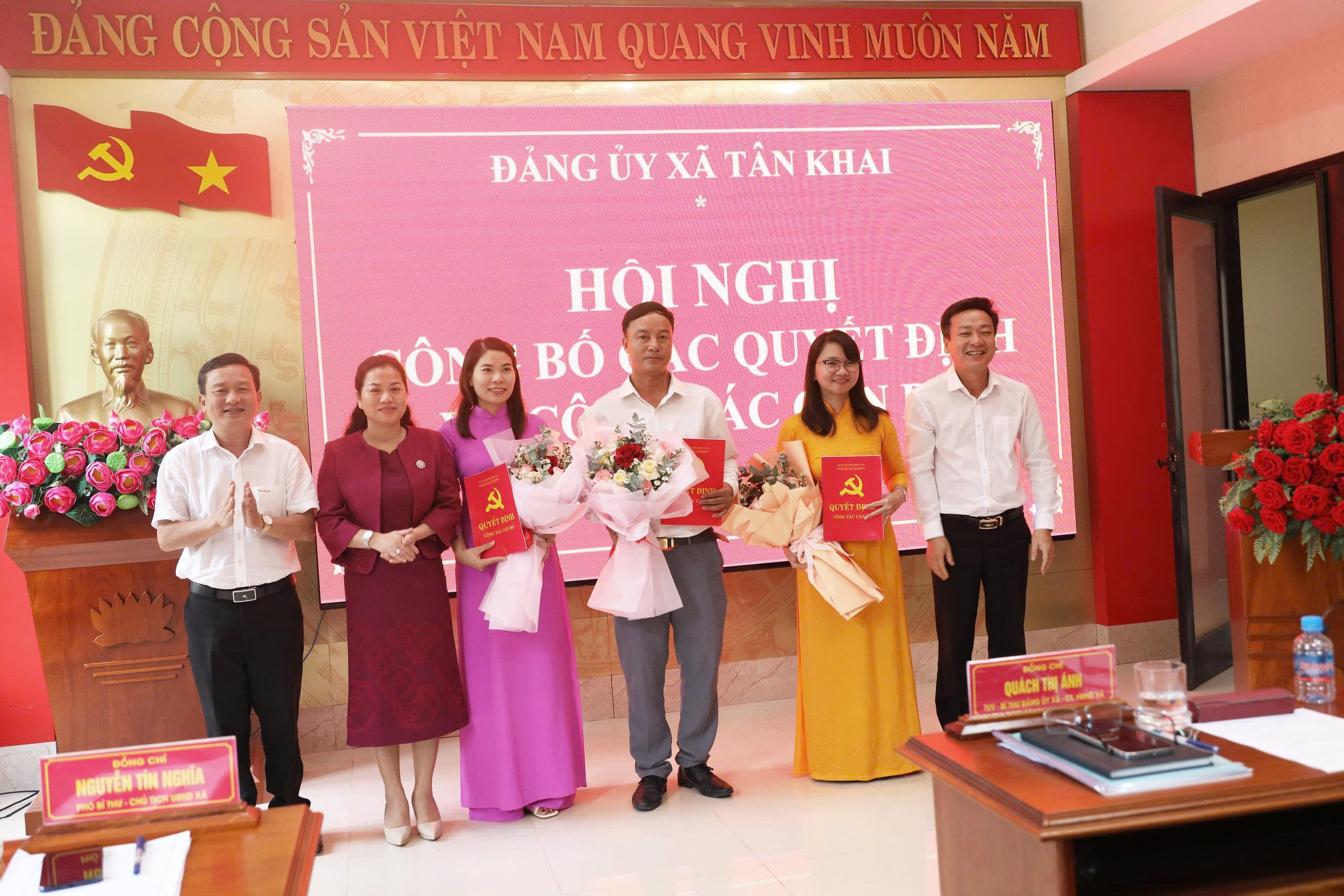ĐẢNG ỦY XÃ TÂN KHAI CÔNG BỐ CÁC QUYẾT ĐỊNH VỀ CÔNG TÁC CÁN BỘ
