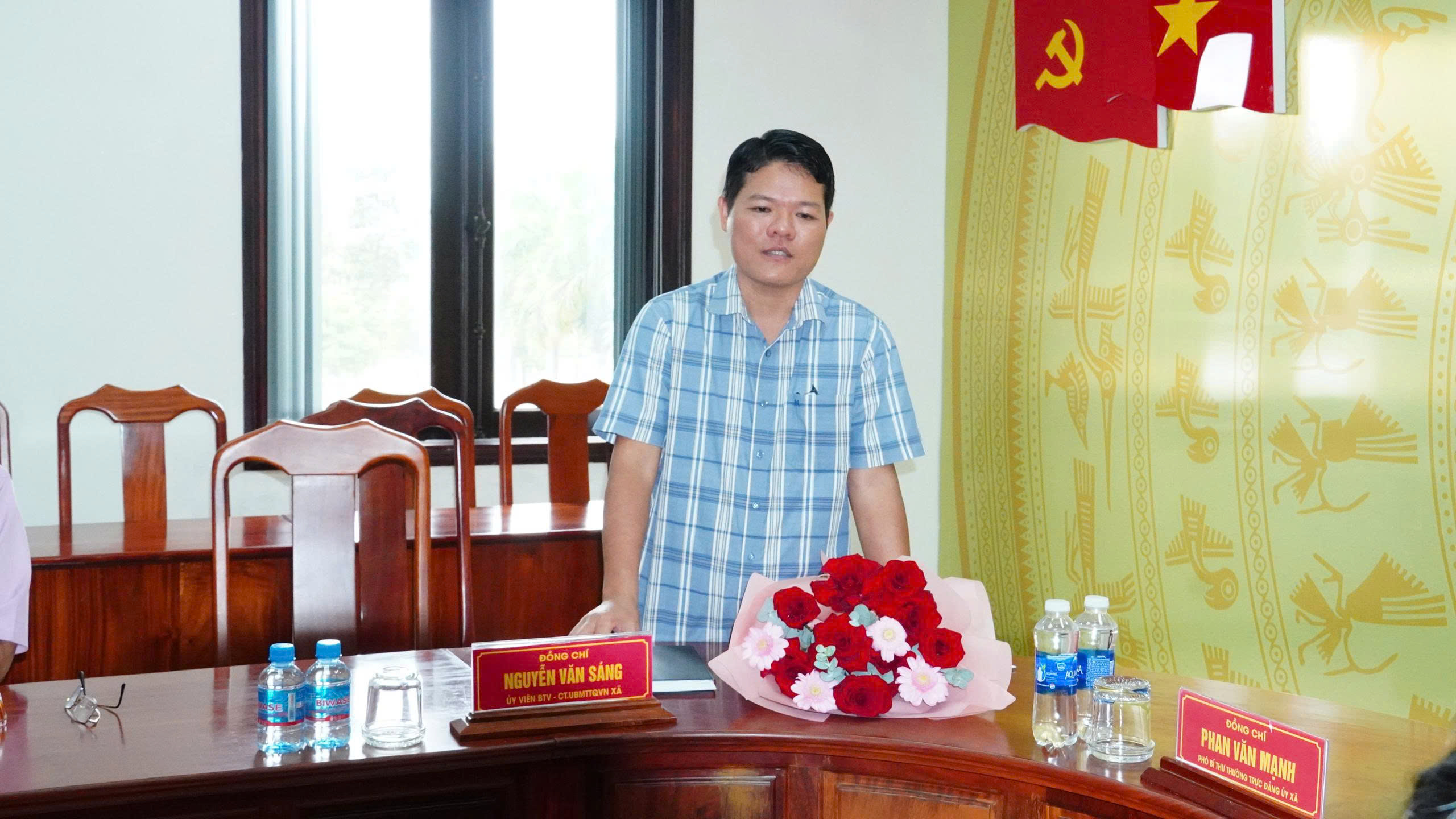 Phát biểu và tặng hoa chúc mừng đoàn tại buổi gặp mặt Ông Phan Văn Mạnh, Phó Bí thư TT Đảng ủy xã yêu cầu cần đảm bảo tốt các điều kiện cho đoàn đại biểu trong quá trình thực hiện nhiệm vụ. Mong muốn các đại biểu phát huy kinh nghiệm, trí tuệ, tích cực tham gia đóng góp nhiều ý kiến có giá trị cho Đại hội, góp phần xây dựng Mặt trận TQVN tỉnh ngày càng vững mạnh.