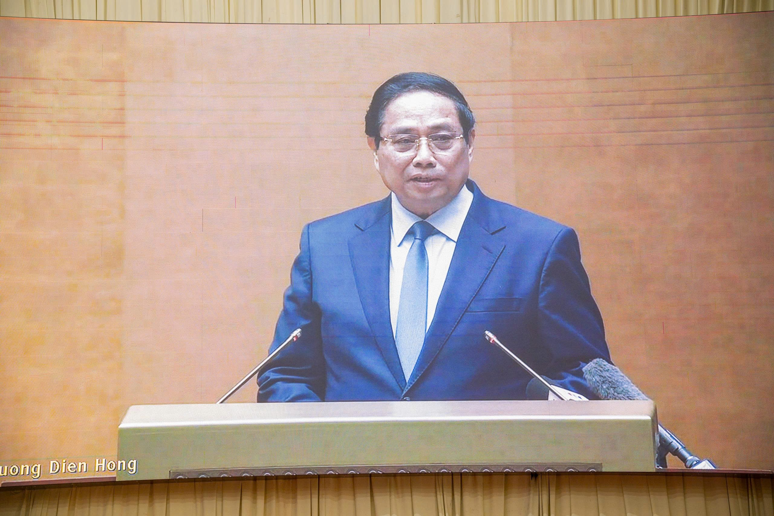 Ảnh 2: Đồng chí Phạm Minh Chính - Ủy viên Bộ Chính trị, Thủ tướng Chính phủ nước Cộng hòa xã hội chủ nghĩa Việt Nam, Trình bày Chuyên đề “Nội dung trọng tâm, cốt lõi của Nghị quyết số 71-NQ/TW, ngày 22/8/2025 của Bộ Chính trị về đột phá phát triển giáo dục và đào tạo và Chương trình hành động thực hiện Nghị quyết.