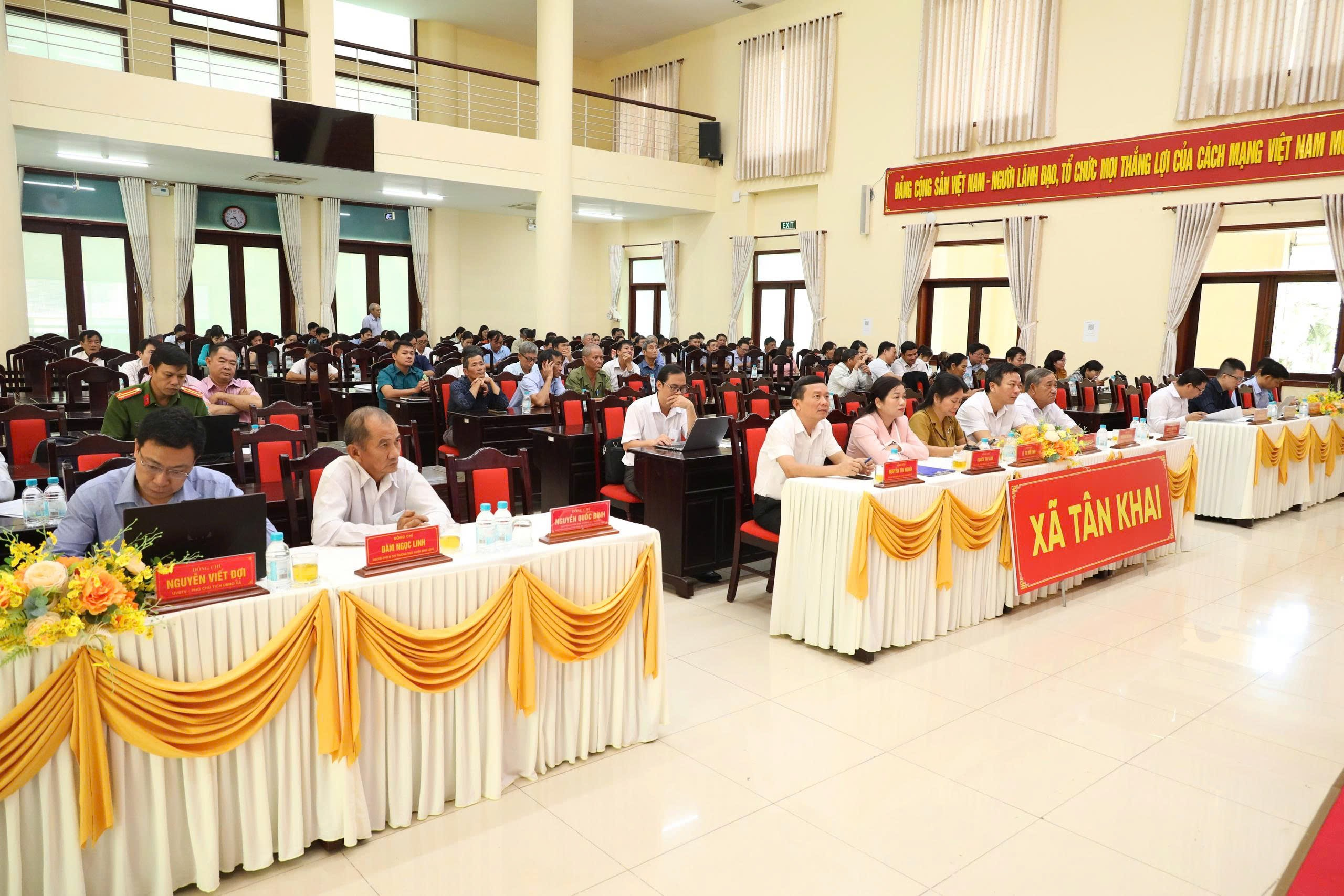 Tại điểm cầu UBND xã Tân Khai, đồng chí Quách Thị Ánh – TUV – Bí thư Đảng ủy – Chủ tịch HĐND xã cùng các đồng chí thường trực Đảng ủy chủ trì Hội nghị. Cùng dự có các đồng chí cán bộ lãnh đạo Ban Thường vụ Huyện ủy Hớn Quản (cũ) đã nghĩ hưu trên địa bàn xã; Ủy viên Ban Thường vụ Đảng ủy, Ủy viên Ban Chấp hành Đảng bộ xã, nhiệm kỳ 2025 - 2030; Ủy viên UBKT Đảng ủy; toàn thể cán bộ, công chức các cơ quan chuyên trách tham mưu, giúp việc Đảng ủy, UBND xã; Bí thư, Phó Bí thư các chi, đảng bộ trực thuộc Đảng bộ xã; Trưởng thôn, sóc; Hiệu trưởng, Phó Hiệu trưởng các trường học; lãnh đạo đơn vị y tế.