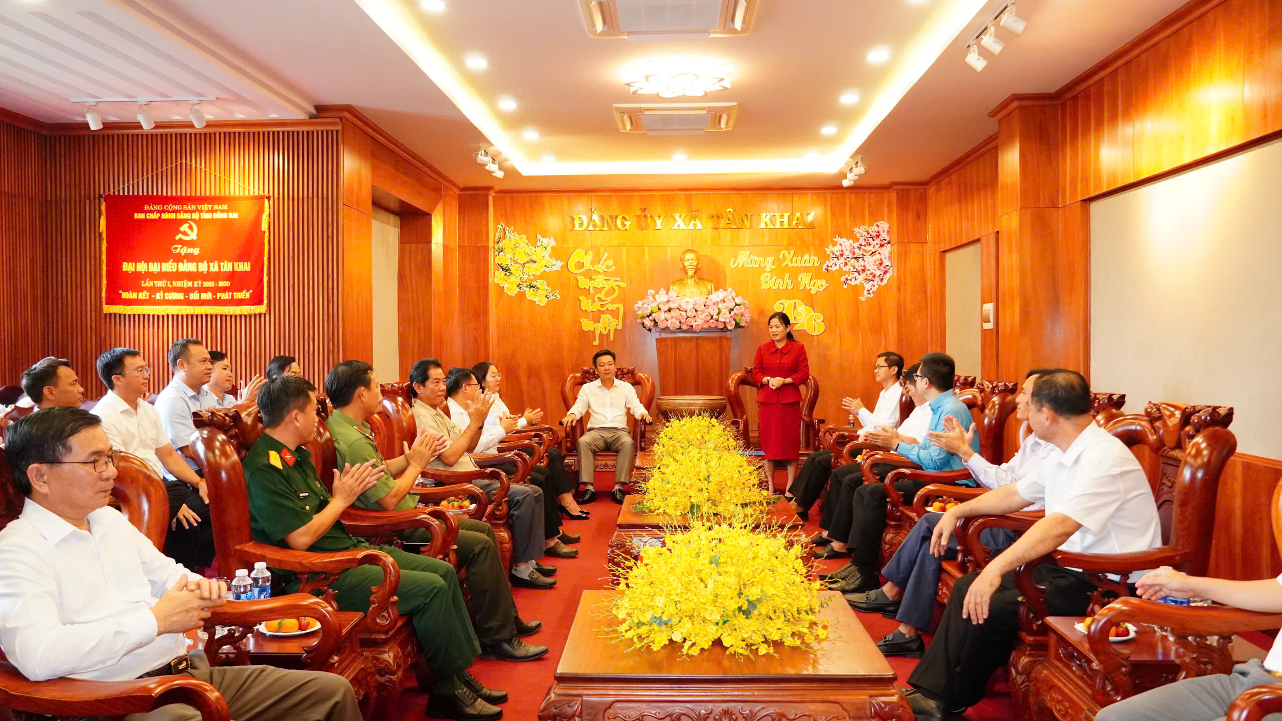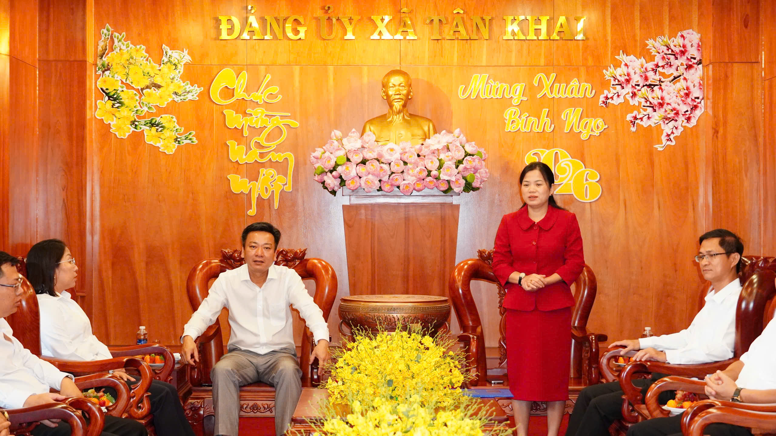 “Tân Khai cần khẩn trương bắt tay ngay vào thực hiện nhiệm vụ với quyết tâm chính trị cao, tinh thần nỗ lực lớn, hành động quyết liệt”. Đó là một trong những phát biểu quan trọng của đồng chí Quách Thị Ánh – TUV – Bí thư Đảng ủy – Chủ tịch HĐND xã tại buổi gặp mặt các đồng chí lãnh đạo đầu năm 2026 và nghe báo cáo tình hình trước, trong và sau Tết Nguyên đán Bính Ngọ 2026.