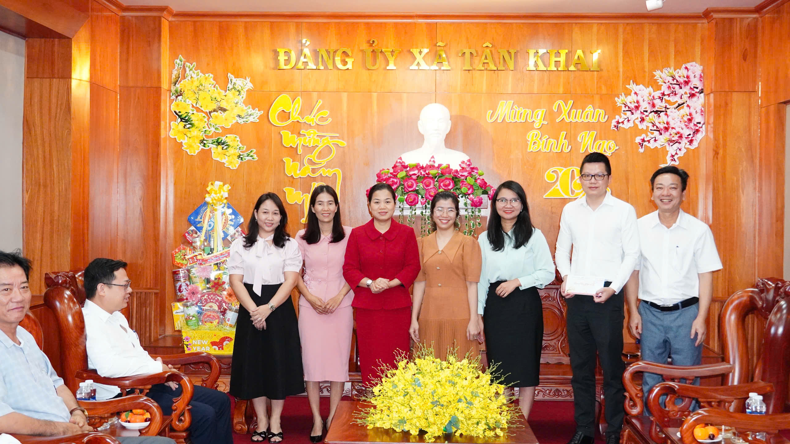 TUV – BÍ THƯ ĐẢNG ỦY – CHỦ TỊCH HĐND XÃ TÂN KHAI QUÁCH THỊ ÁNH CHÚC TẾT CÁC CƠ QUAN CHUYÊN TRÁCH THAM MƯU, GIÚP VIỆC ĐẢNG ỦY, TRUNG TÂM CHÍNH TRỊ, ỦY BAN MẶT TRẬN TỔ QUỐC VÀ CÁC ĐOÀN THỂ
