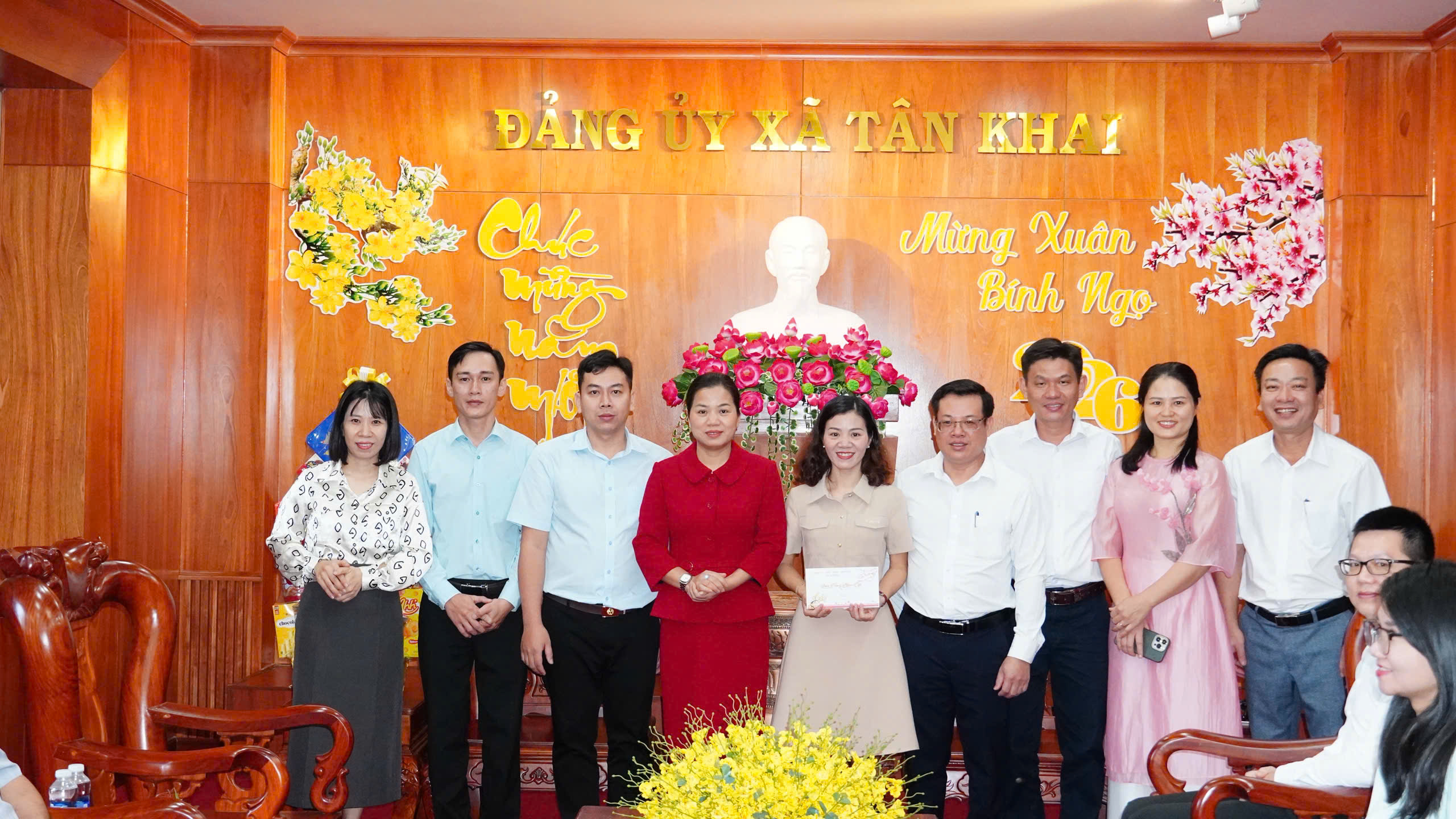 Tại đây, lãnh đạo xã trao tặng quà và ân cần thăm hỏi, ghi nhận những nỗ lực, đóng góp thầm lặng nhưng bền bỉ của đội ngũ cán bộ, công chức, viên chức các cơ quan chuyên trách tham mưu, giúp việc Đảng ủy, Trung tâm Chính trị, Ủy ban Mặt trận Tổ quốc và các tổ chức chính trị – xã hội xã trong thời gian qua; đồng thời gửi gắm niềm tin, lời chúc năm mới sức khỏe, bình an, đoàn kết và hoàn thành thắng lợi nhiệm vụ chính trị, góp phần xây dựng xã Tân Khai ngày càng phát triển vững mạnh.